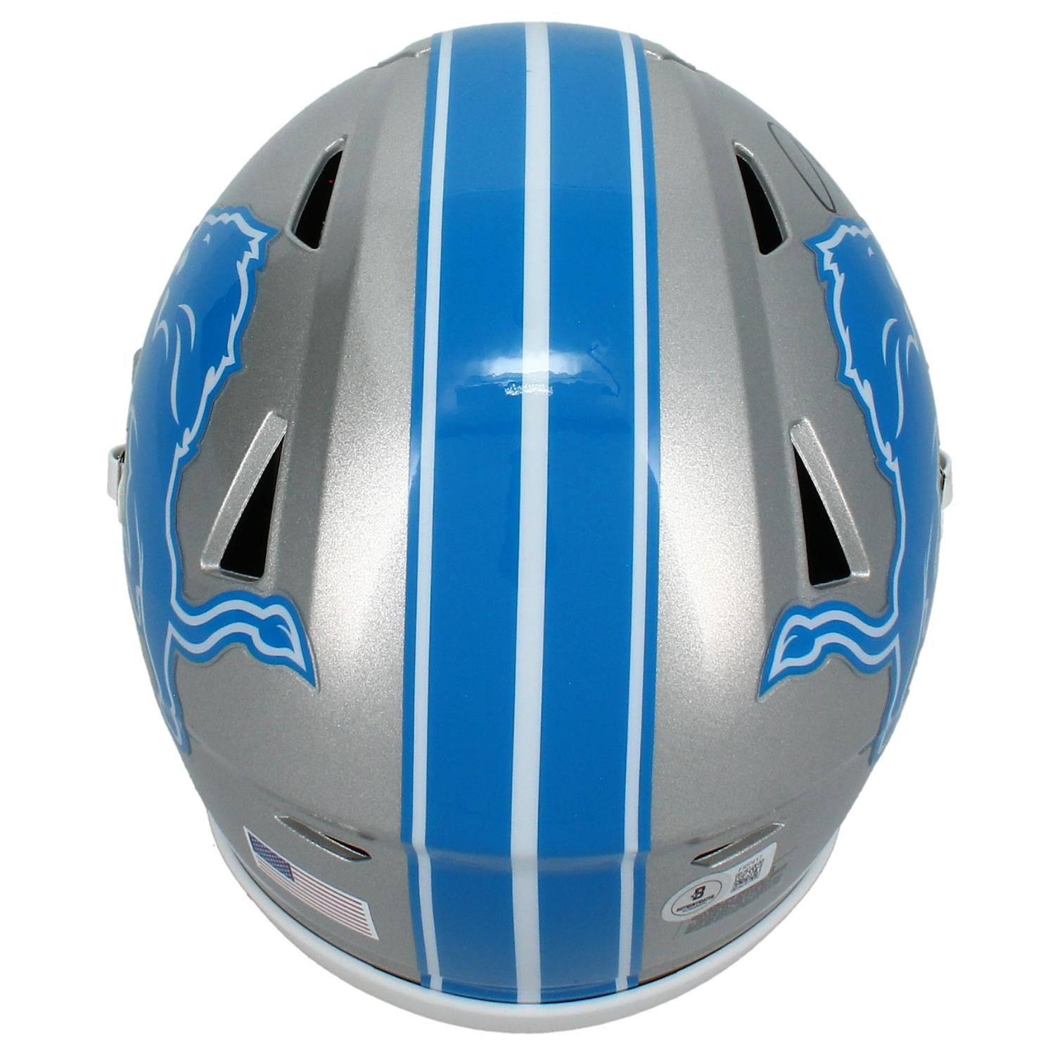 Riddell Detroit Lions mid-size speedflex helmet has been hand-signed by Jameson Williams.