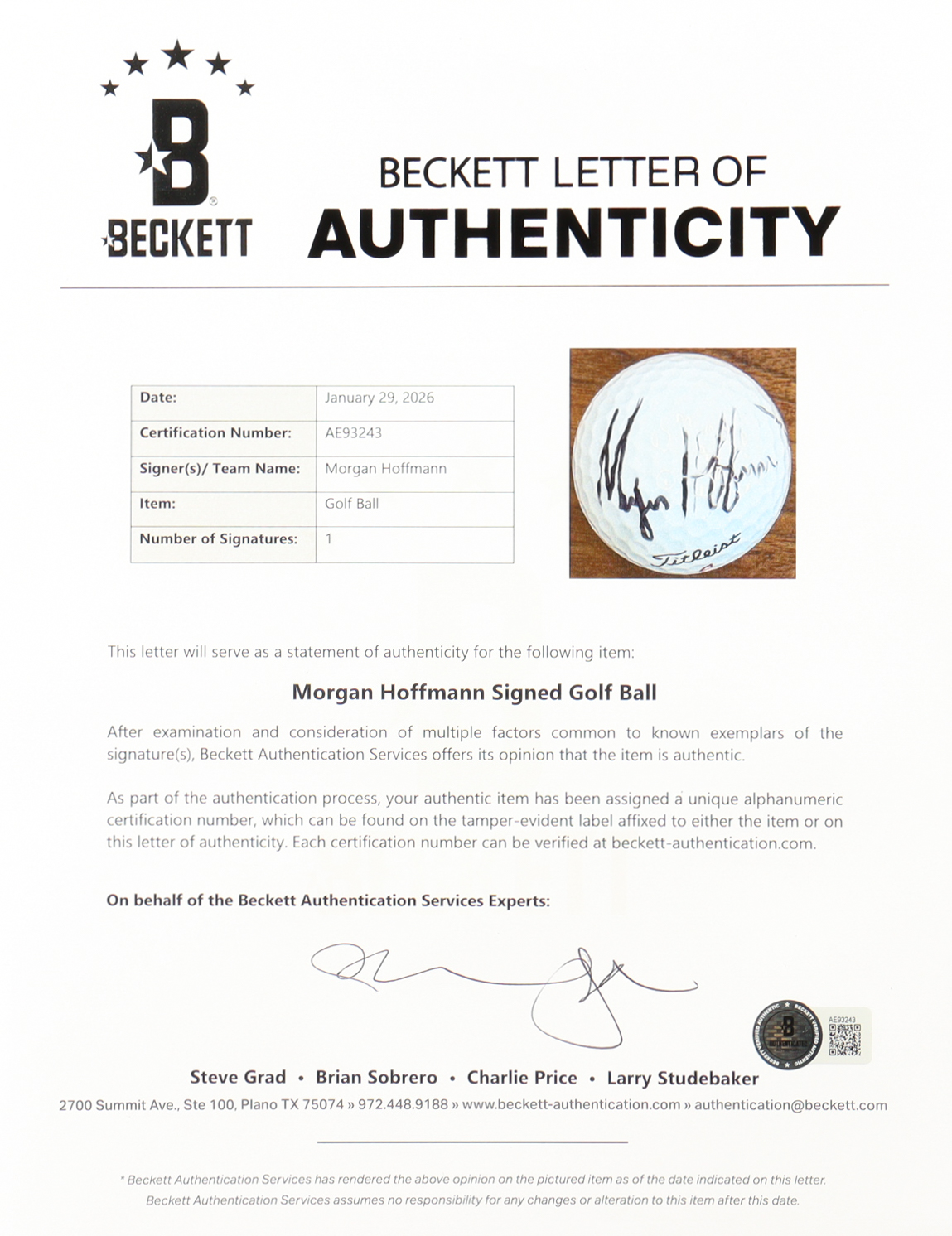 Morgan Hoffmann Signed Golf Ball (Beckett)