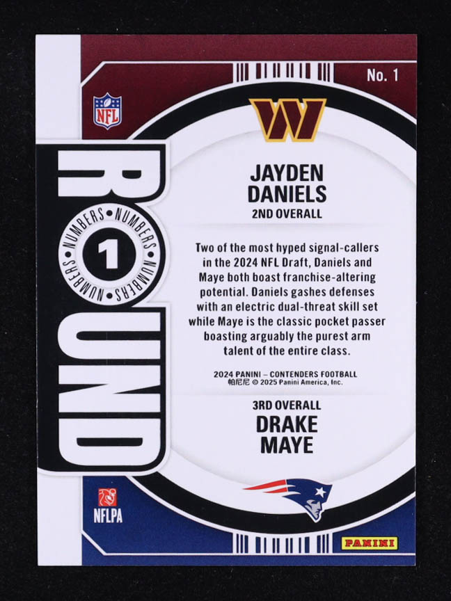 Drake Maye / Jayden Daniels 2024 Panini Contenders Round Numbers #1 RC