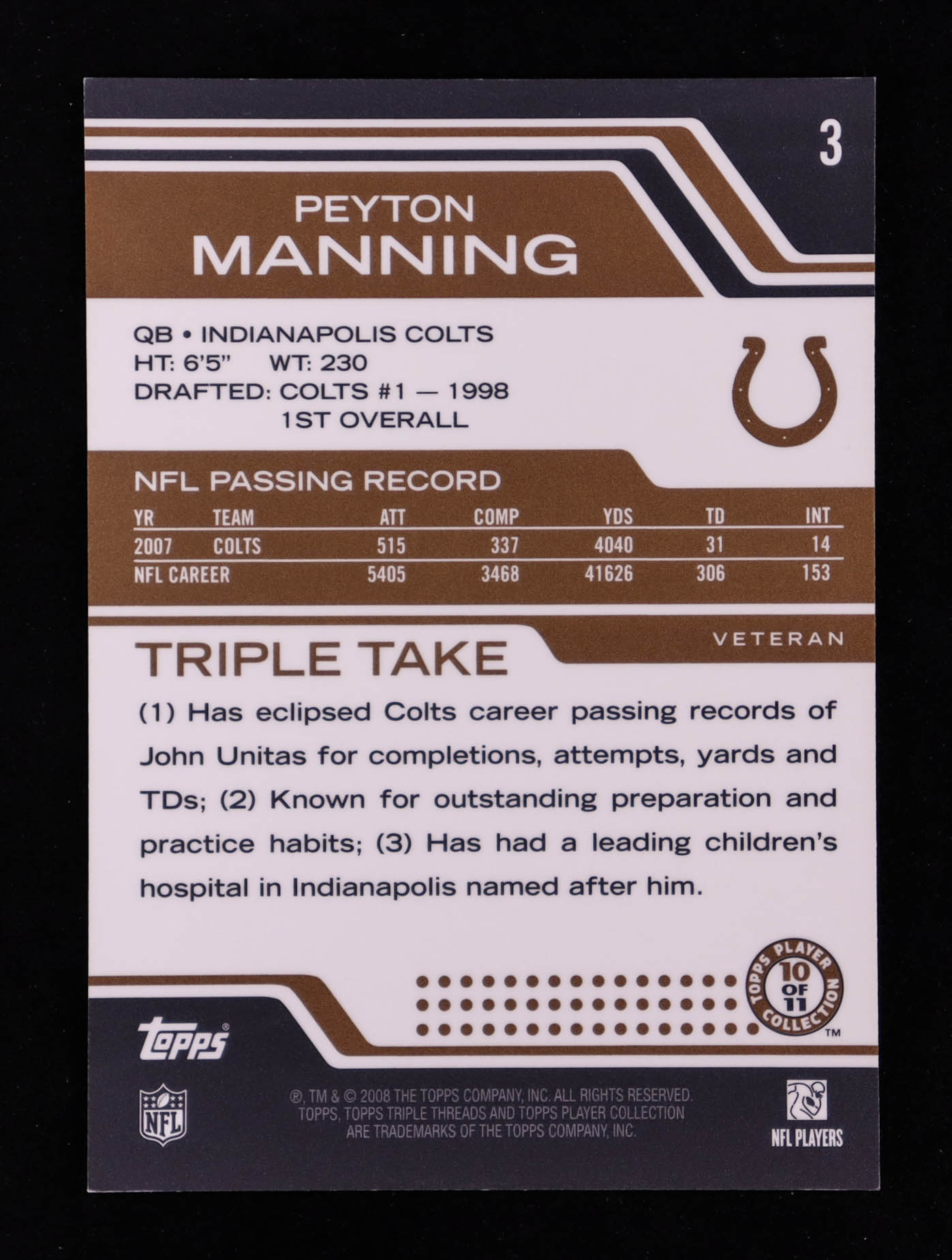 Peyton Manning 2008 Topps Triple Threads Sepia #3 #241/249
