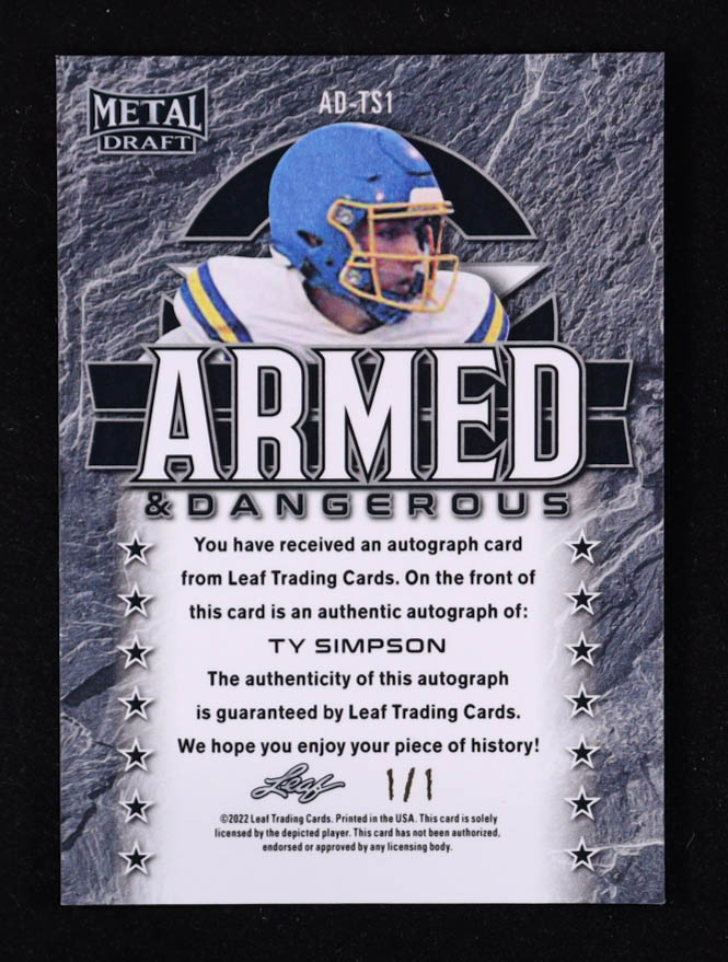 Ty Simpson 2022 Leaf Metal Draft Armed and Dangerous Crystal Gold #ADTS1 #1/1 RC