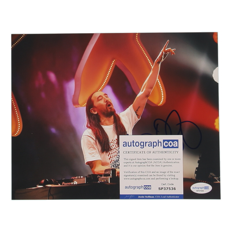 Photo measures 8" x 10" in size and has been hand-signed by Steve Aoki.