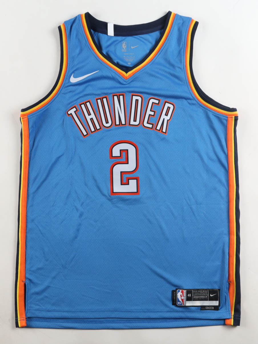 Nike authentic jersey with everything pressed on, size L. Hand-signed by Shai Gilgeous-Alexander (Oklahoma City Thunder).
