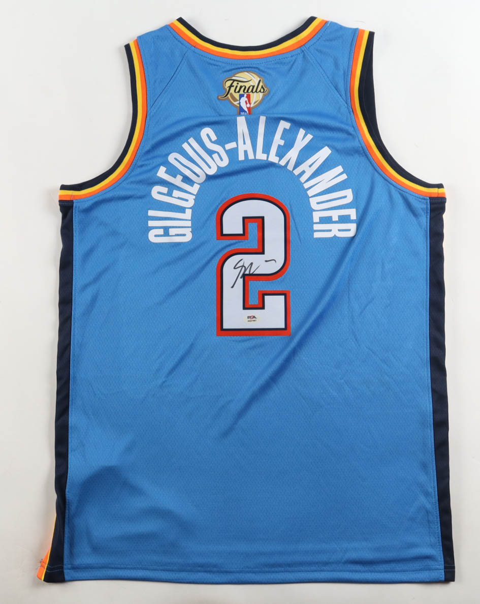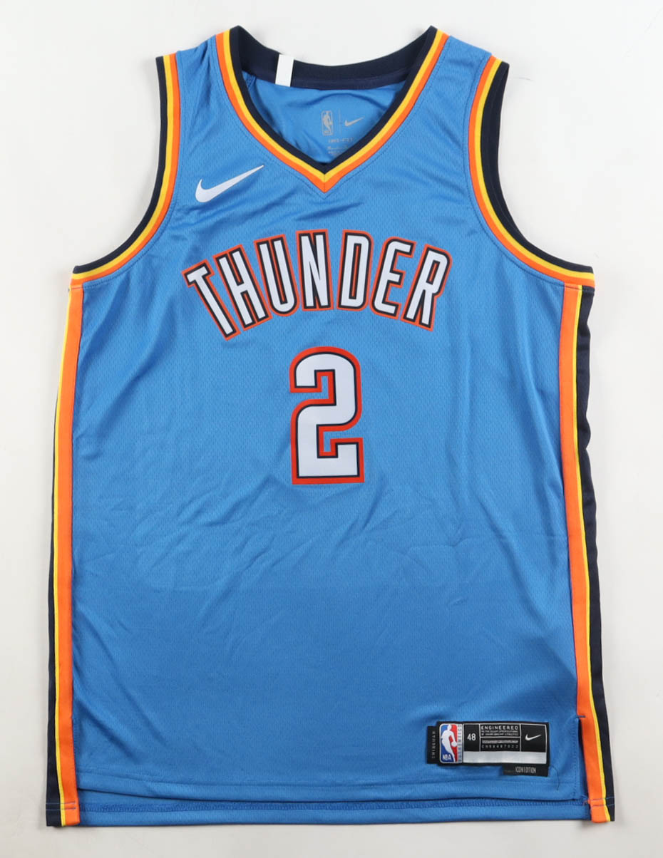 Nike authentic jersey with everything pressed on, size 48. Hand-signed by Shai Gilgeous-Alexander (Oklahoma City Thunder).