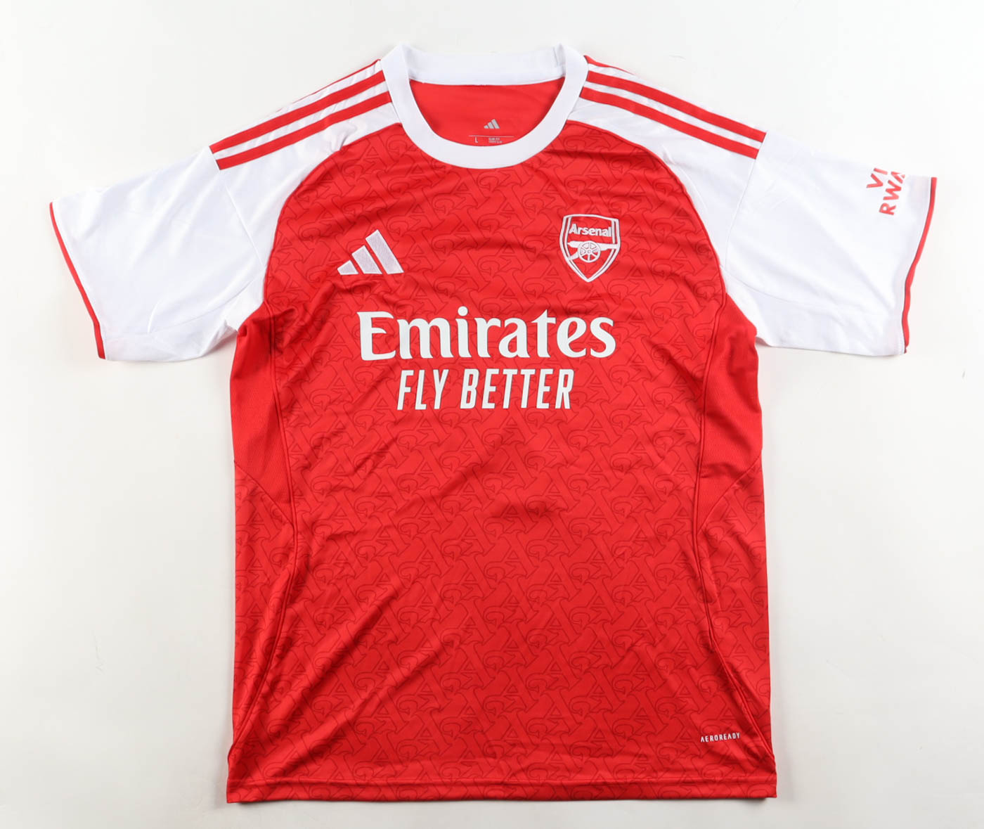 Adidas authentic jersey with everything pressed and sewn on, size L. Hand-signed by Bukayo Saka (Arsenal F.C.).