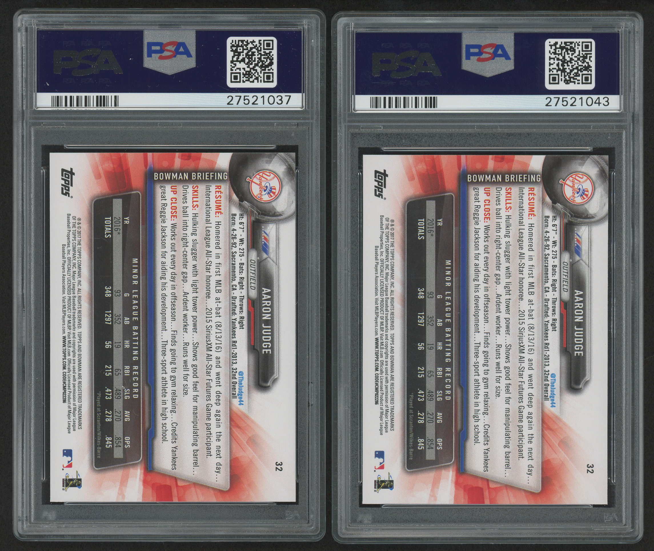 Lot of (2) 2017 Bowman #32 Aaron Judge RC Baseball Cards (PSA 9)