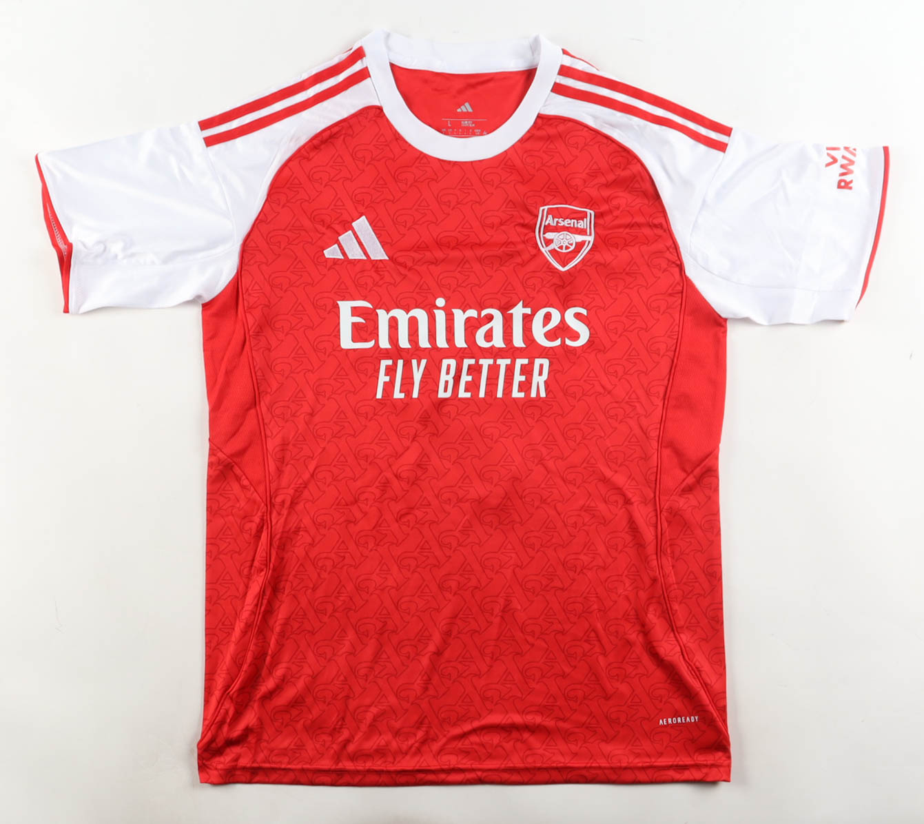 Adidas authentic jersey with everything pressed and sewn on, size L. Hand-signed by Bukayo Saka (Arsenal F.C.).
