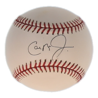 Rawlings Official American League baseball has been hand-signed by Cal Ripken Jr. (Baltimore Orioles, HOF). Please note, the ball is naturally toned and stained throughout.