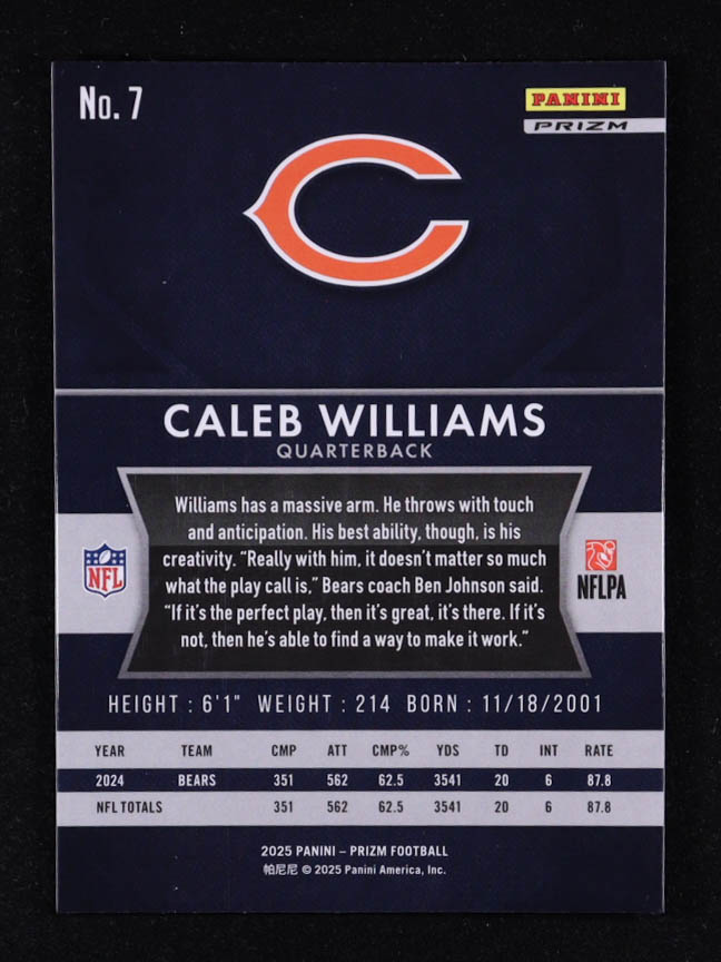 Caleb Williams 2025 Panini Prizm Prizm Flashback Prizms Silver #7