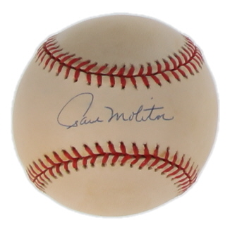 Rawlings Official American League baseball. Has been hand-signed by Paul Molitor (HOF). Please note, ball has been stained and naturally toned.