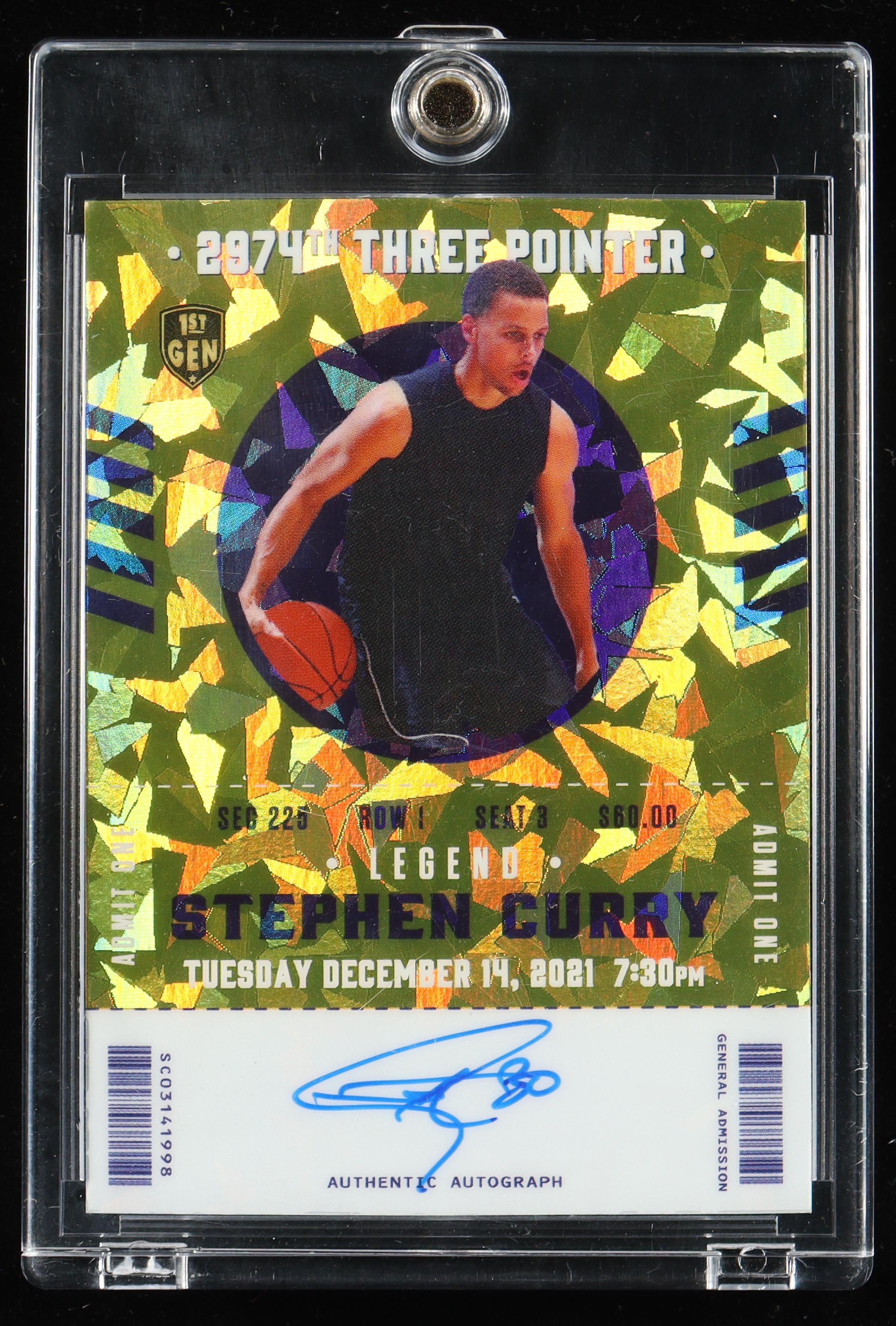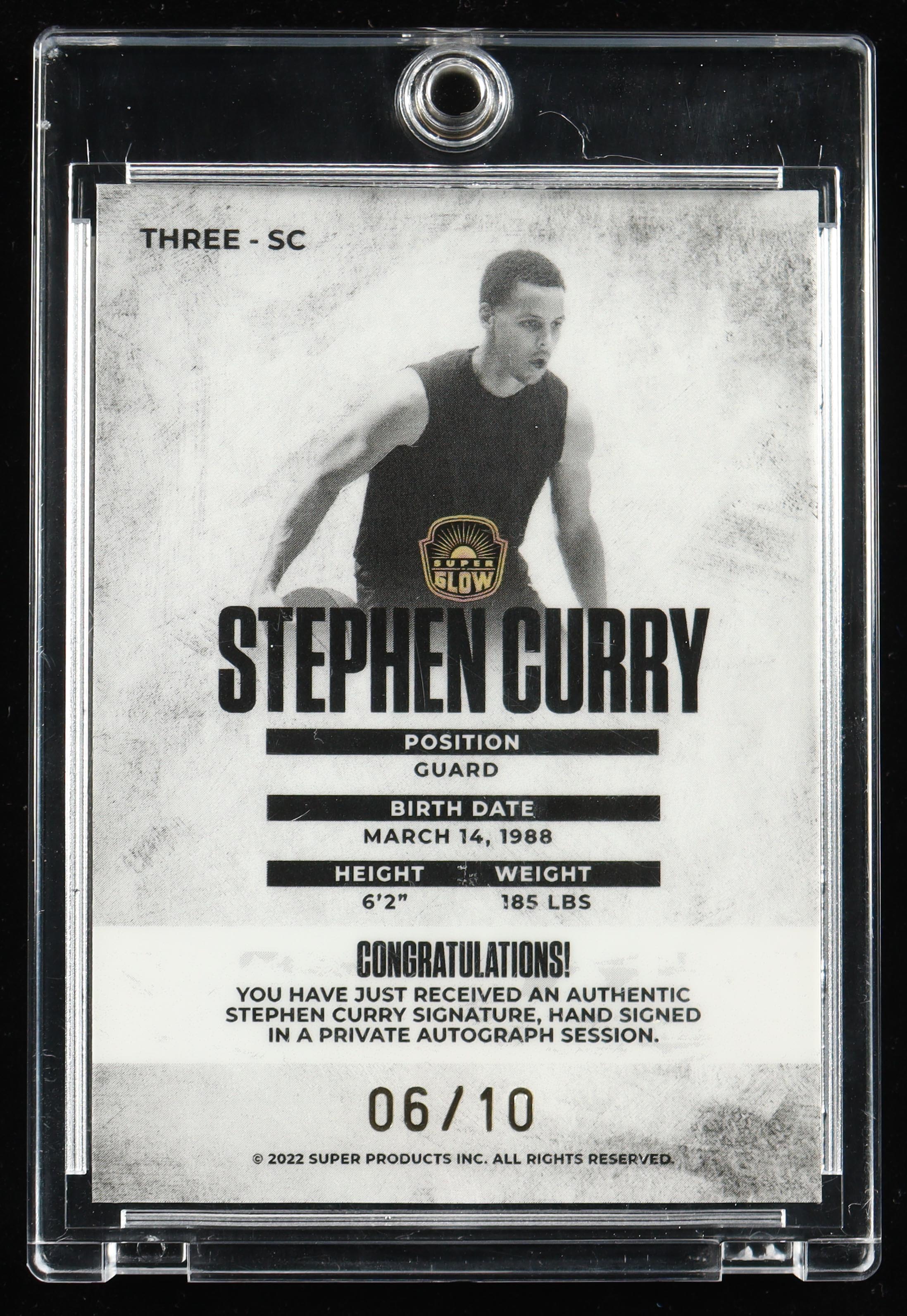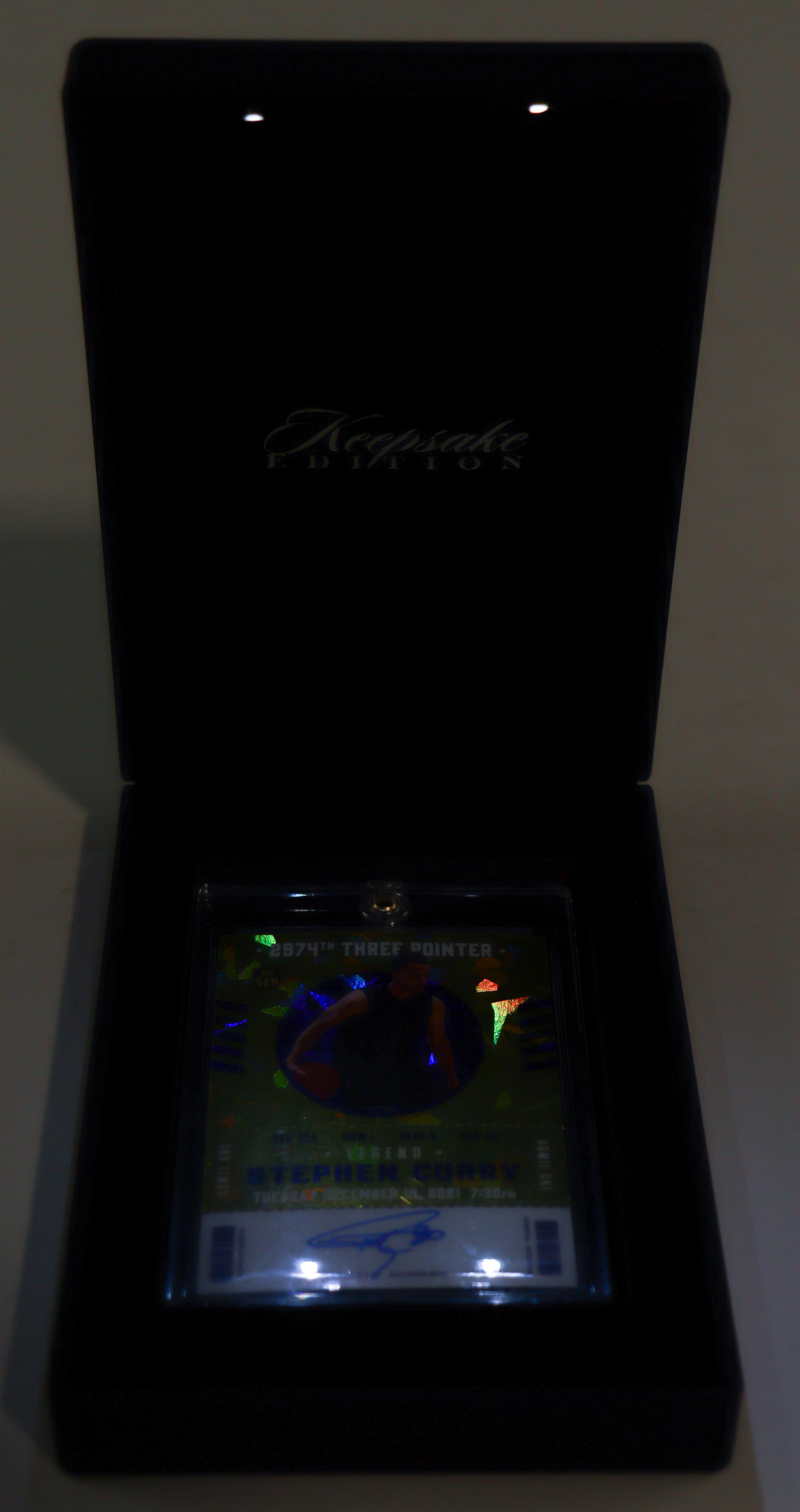 Stephen Curry 2022 Keepsake Edition 1st Gen Superglow Autographs Gold Crystal #THREE-SC #6/10