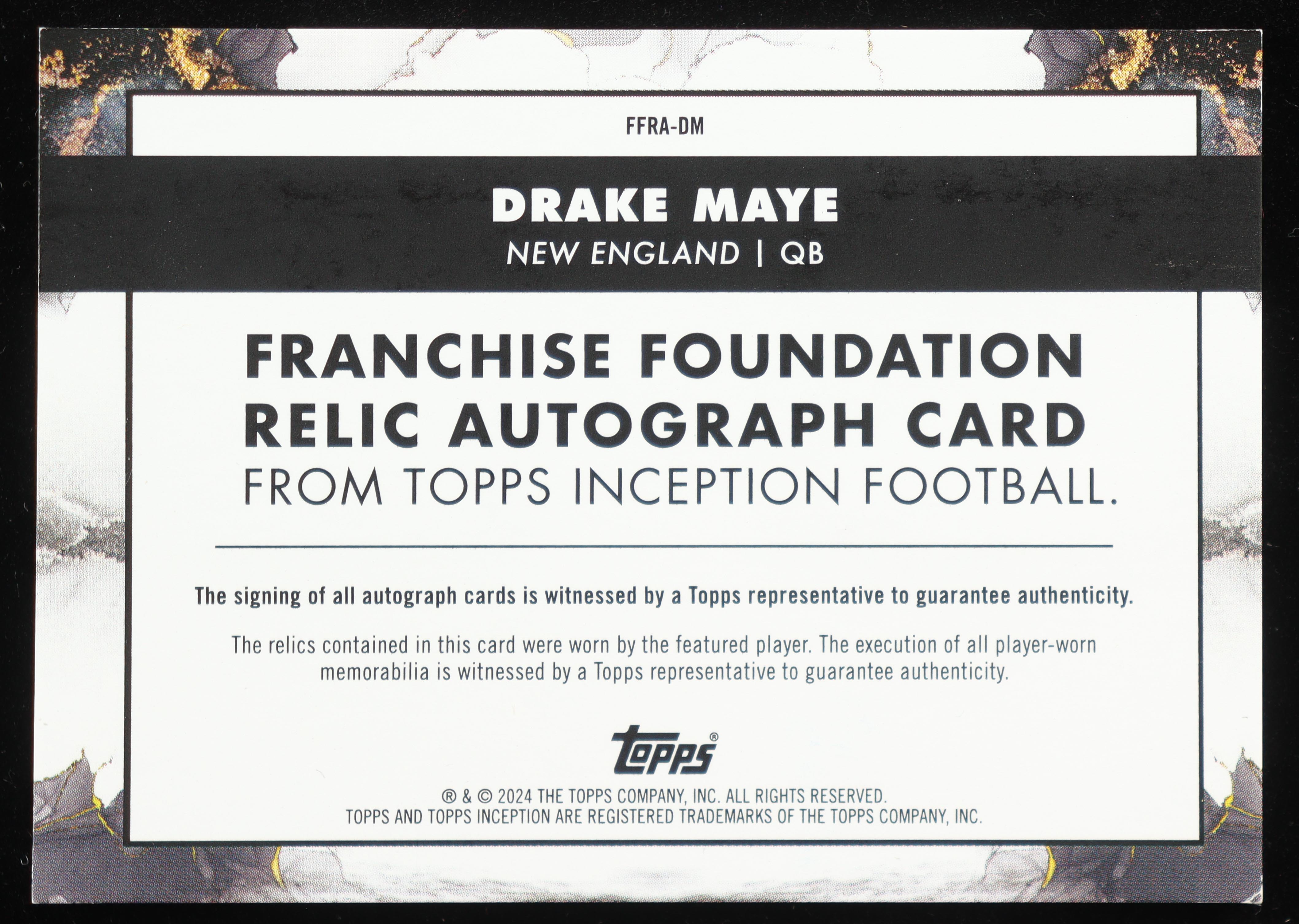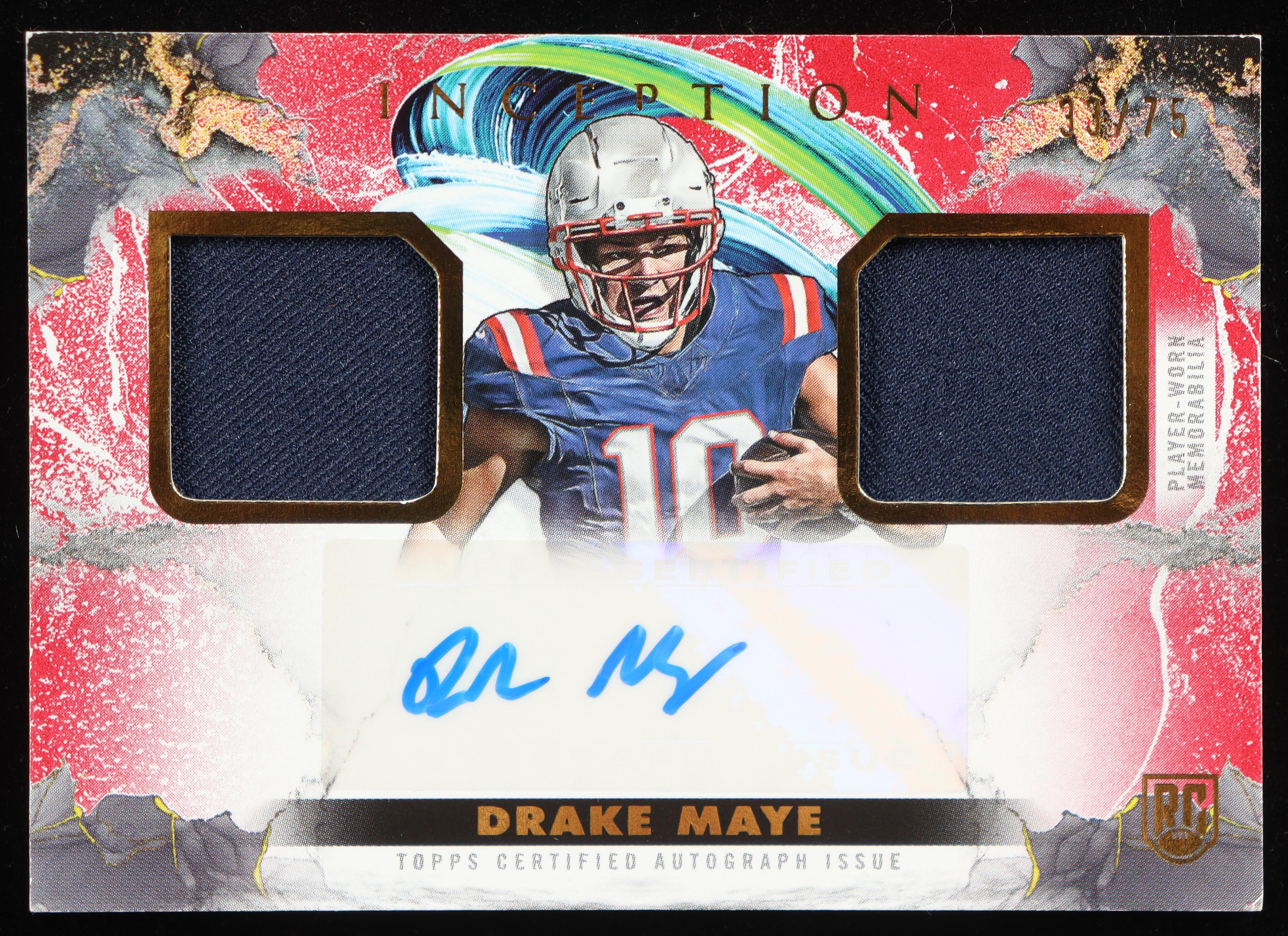 Drake Maye 2024 Topps Inception Franchise Foundation Relic Autographs Red #FFRADM RC #33/75