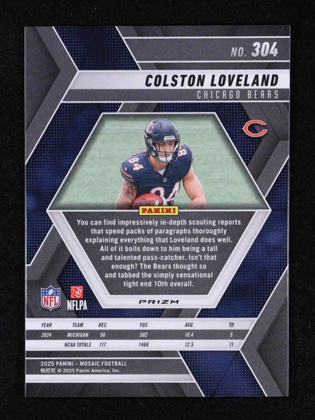 Colston Loveland 2025 Panini Mosaic Mosaic Reactive Blue #304 RC