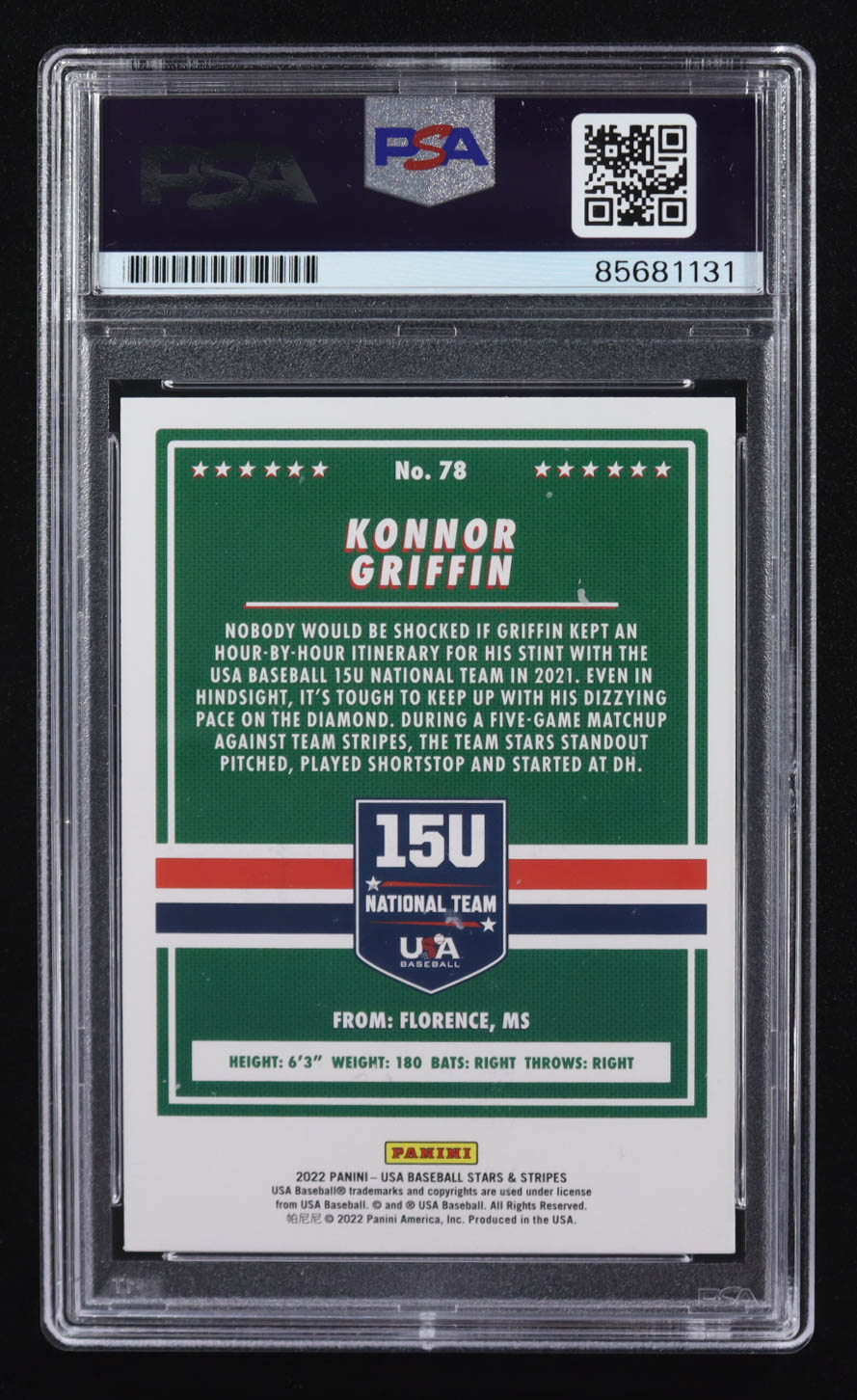 Konnor Griffin Signed 2022 USA Baseball Stars and Stripes #78 (PSA Encapsulated)