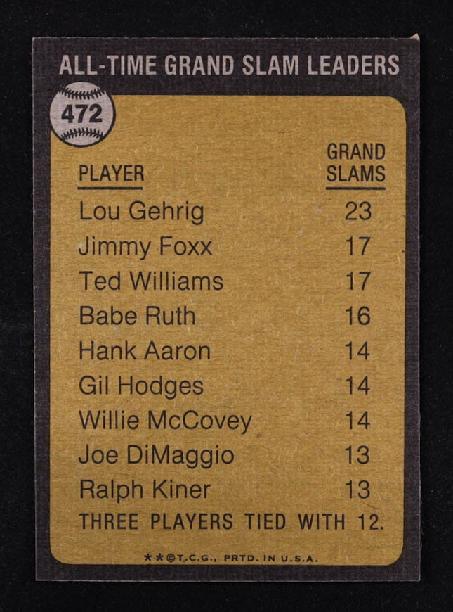 Lou Gehrig 1973 Topps #472 All-Time Grand Slam Leader