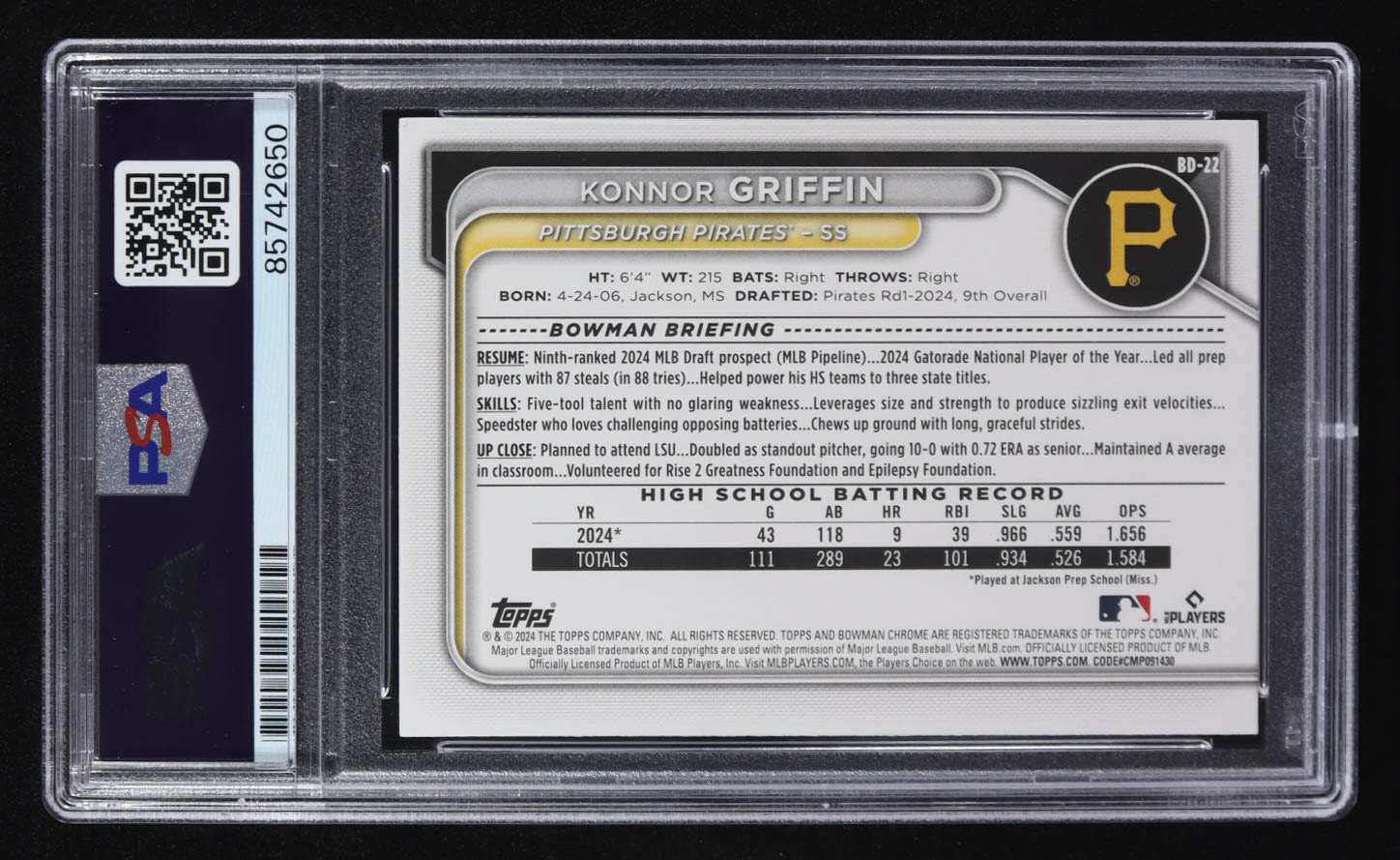 Konnor Griffin Signed 2024 Bowman Draft #BD22 (PSA Encapsulated)