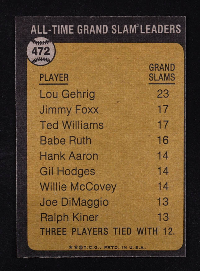 Lou Gehrig 1973 Topps #472 All-Time Grand Slam Leader