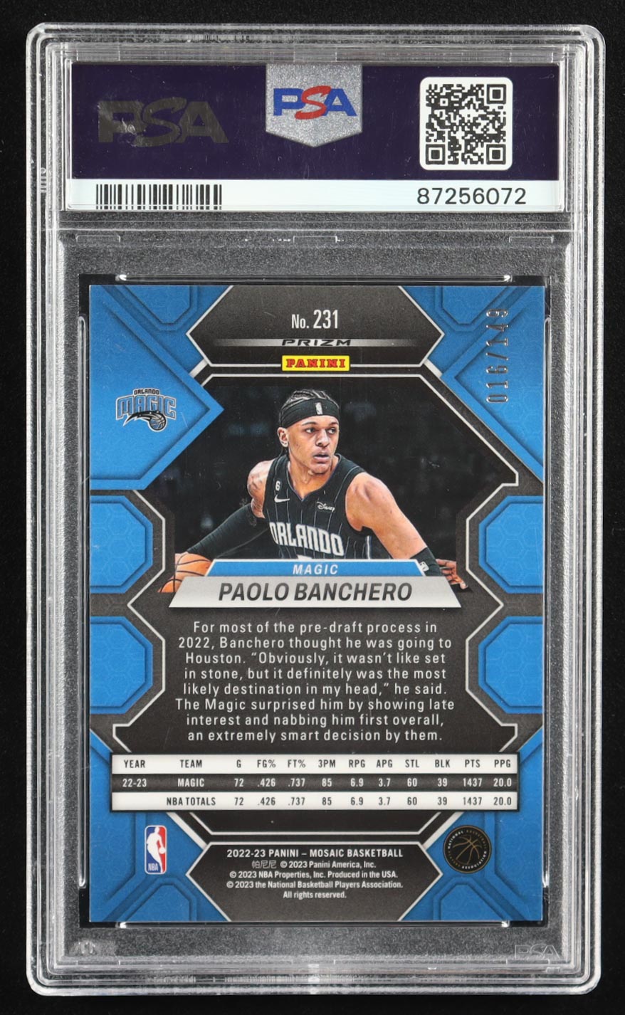 Paolo Banchero 2022 Panini Mosaic Pink #231 RC #016/149 (PSA 10)