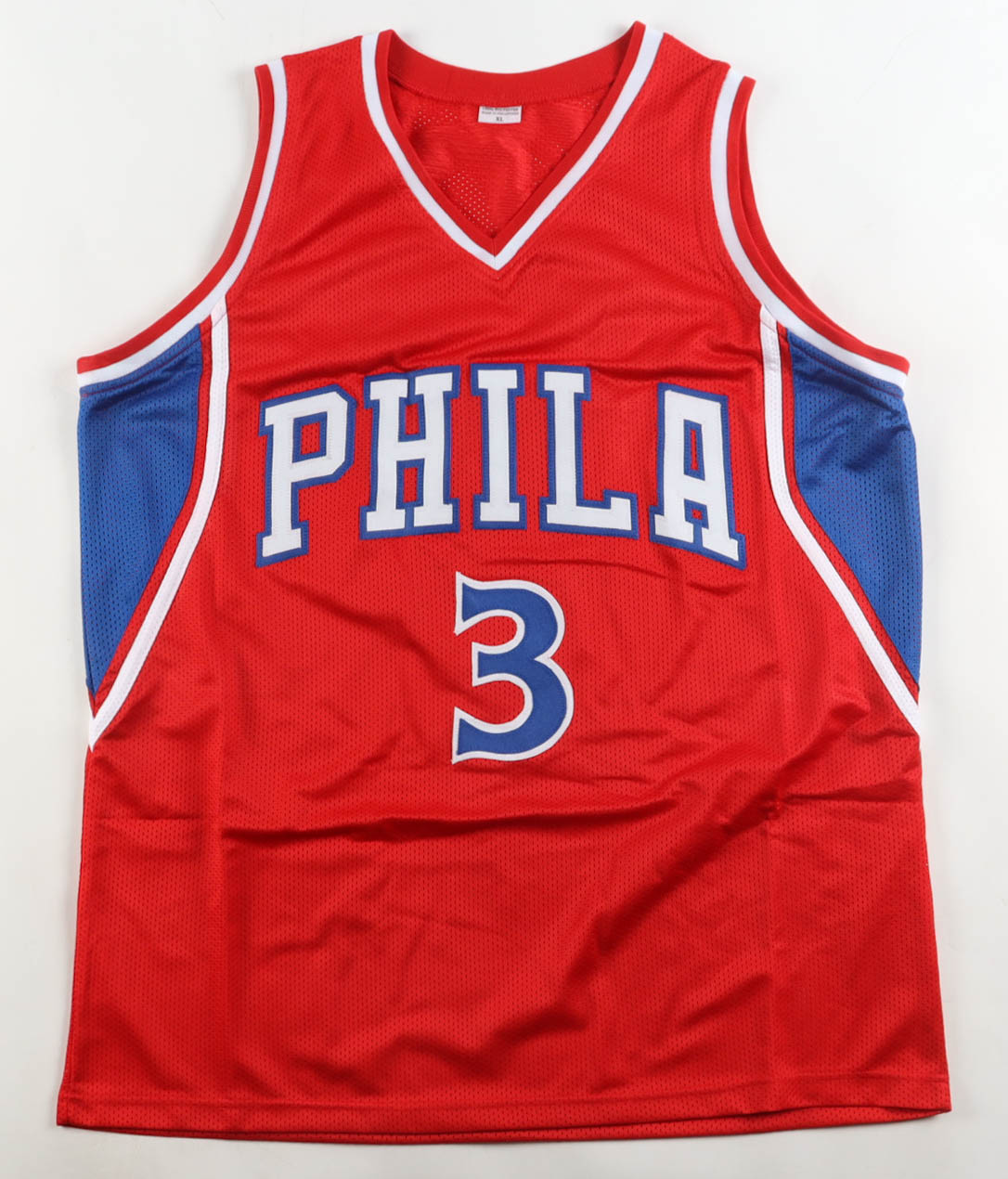 Custom jersey with everything sewn on, size XL. Hand-signed by Allen Iverson (HOF).