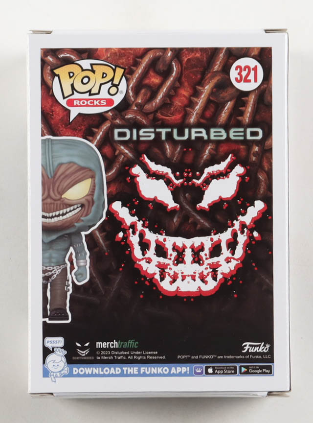 Vinyl figure measures approximately 4" tall in size and has been hand-signed on the packaging by David Draiman. Please note the window has been swapped.