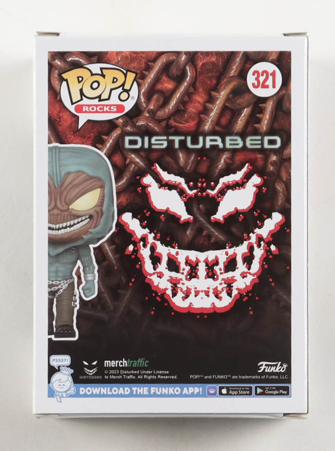 Vinyl figure measures approximately 4" tall in size and has been hand-signed on the packaging by David Draiman. Please note the window has been swapped.