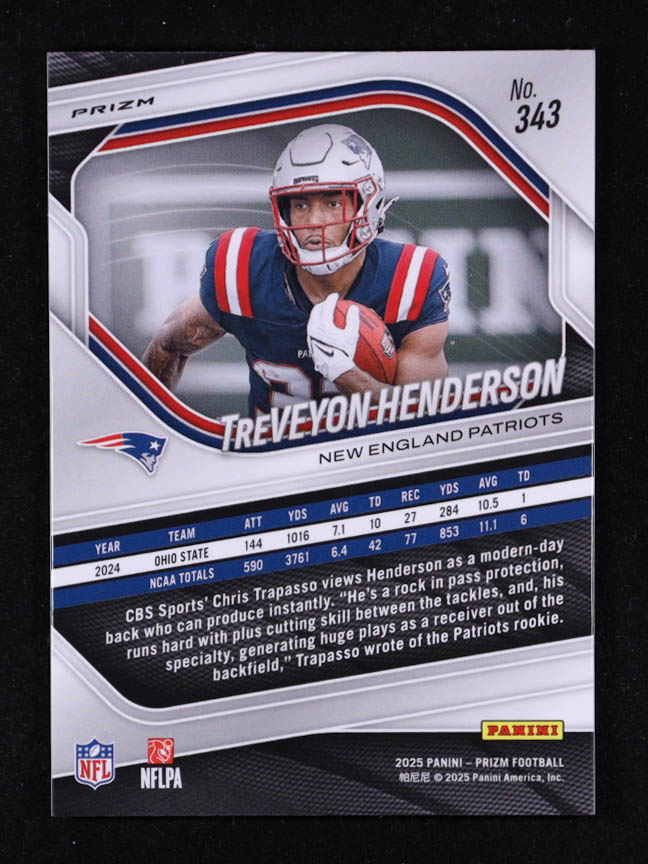TreVeyon Henderson 2025 Panini Prizm Prizms Lazer #343 RC
