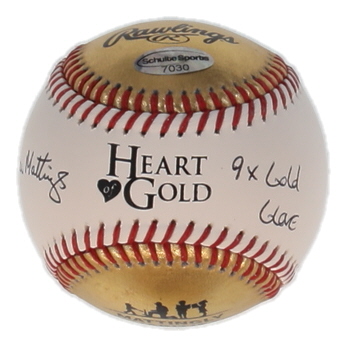Don Mattingly Signed OML Gold Leather Baseball Inscribed "9x Gold Glove" (Schulte Sports)