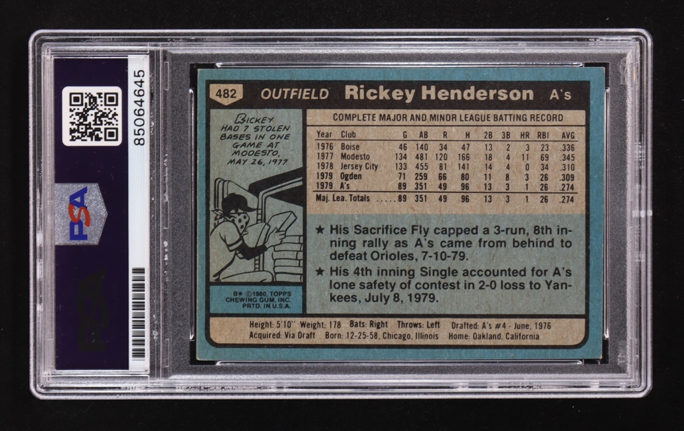 Rickey Henderson Signed 1980 Topps #482 RC (PSA | Autograph Graded PSA 8)