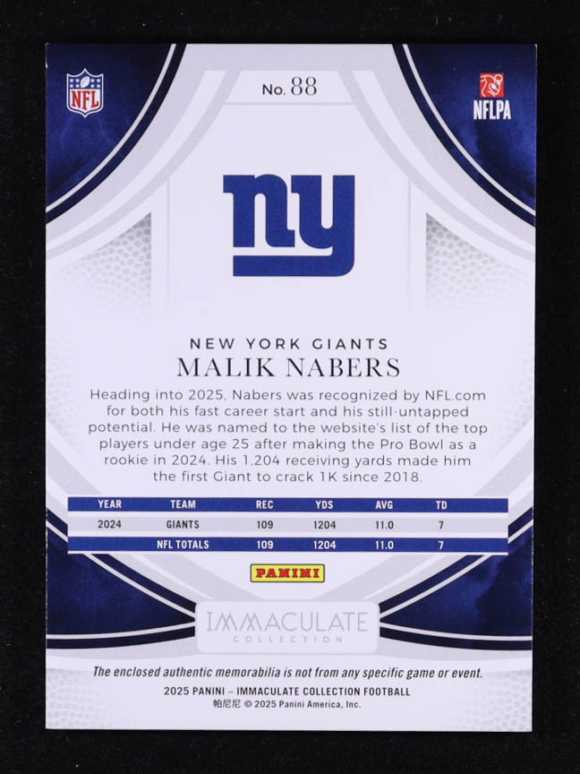 Malik Nabers 2025 Immaculate Collection Red JSY #88 #11/75