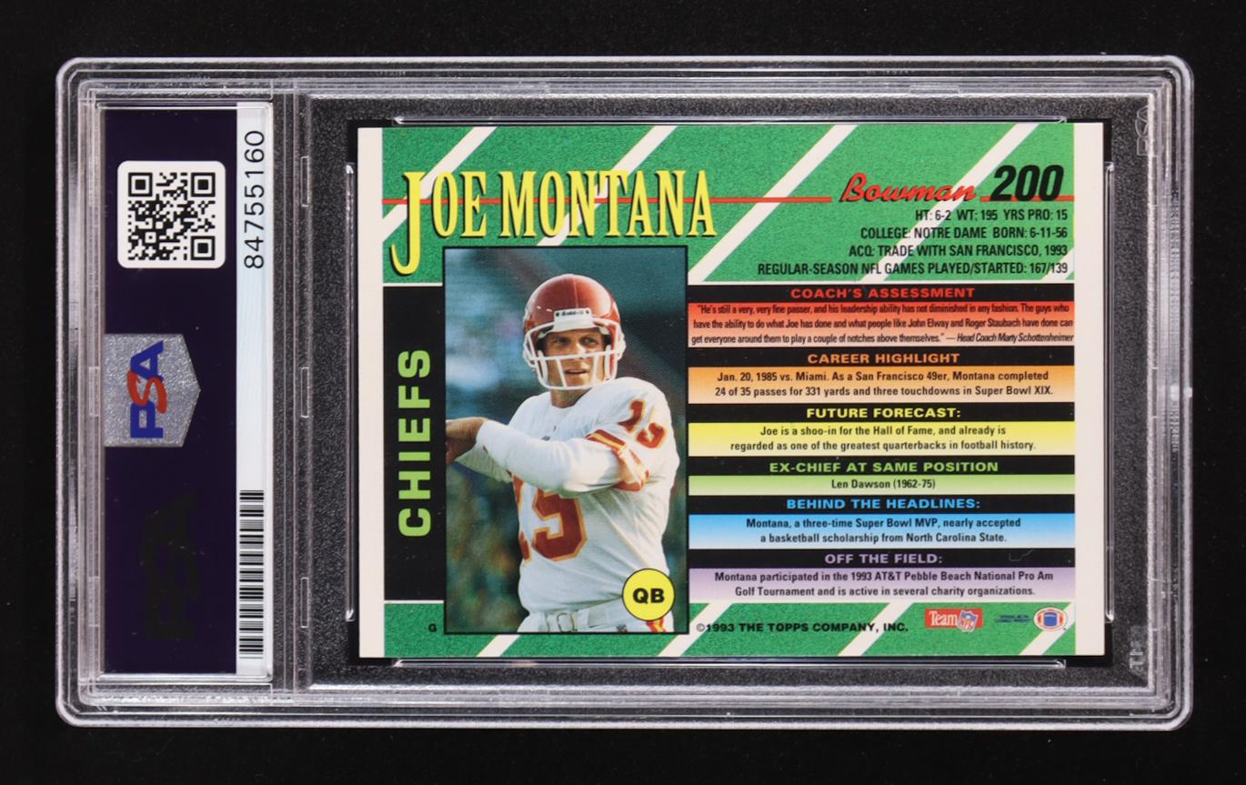 Joe Montana Signed 1993 Bowman #200 (PSA)