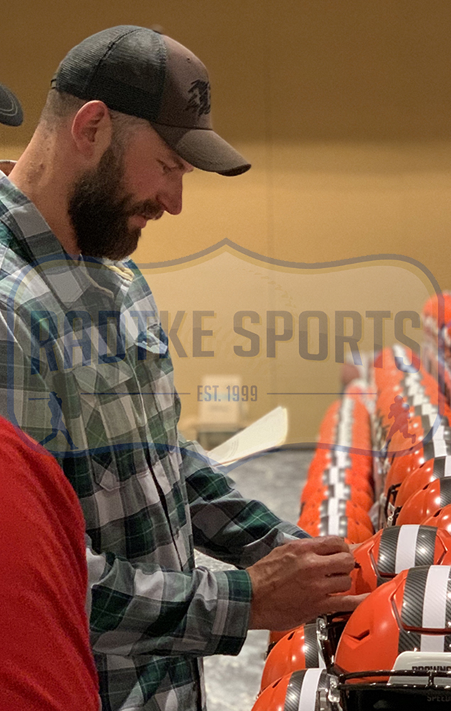 Riddell Cleveland Browns full-size speed replica helmet. Hand-signed by Joe Thomas (HOF).