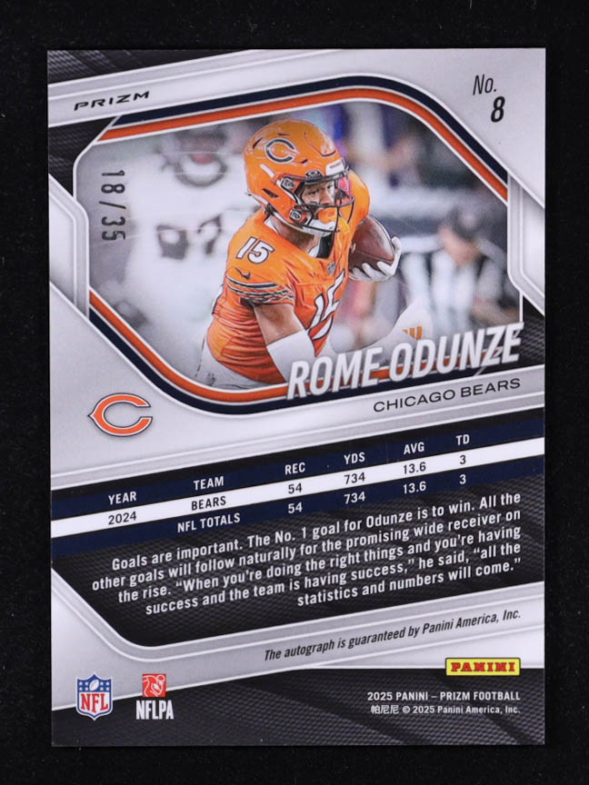 Rome Odunze 2025 Panini Prizm Base Autographs Prizms Red Shimmer #8 #18/35