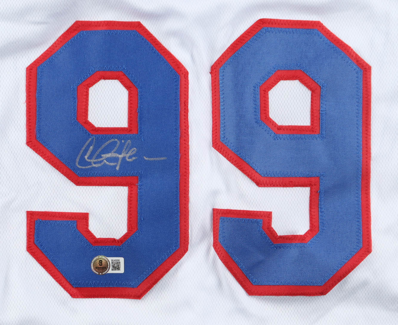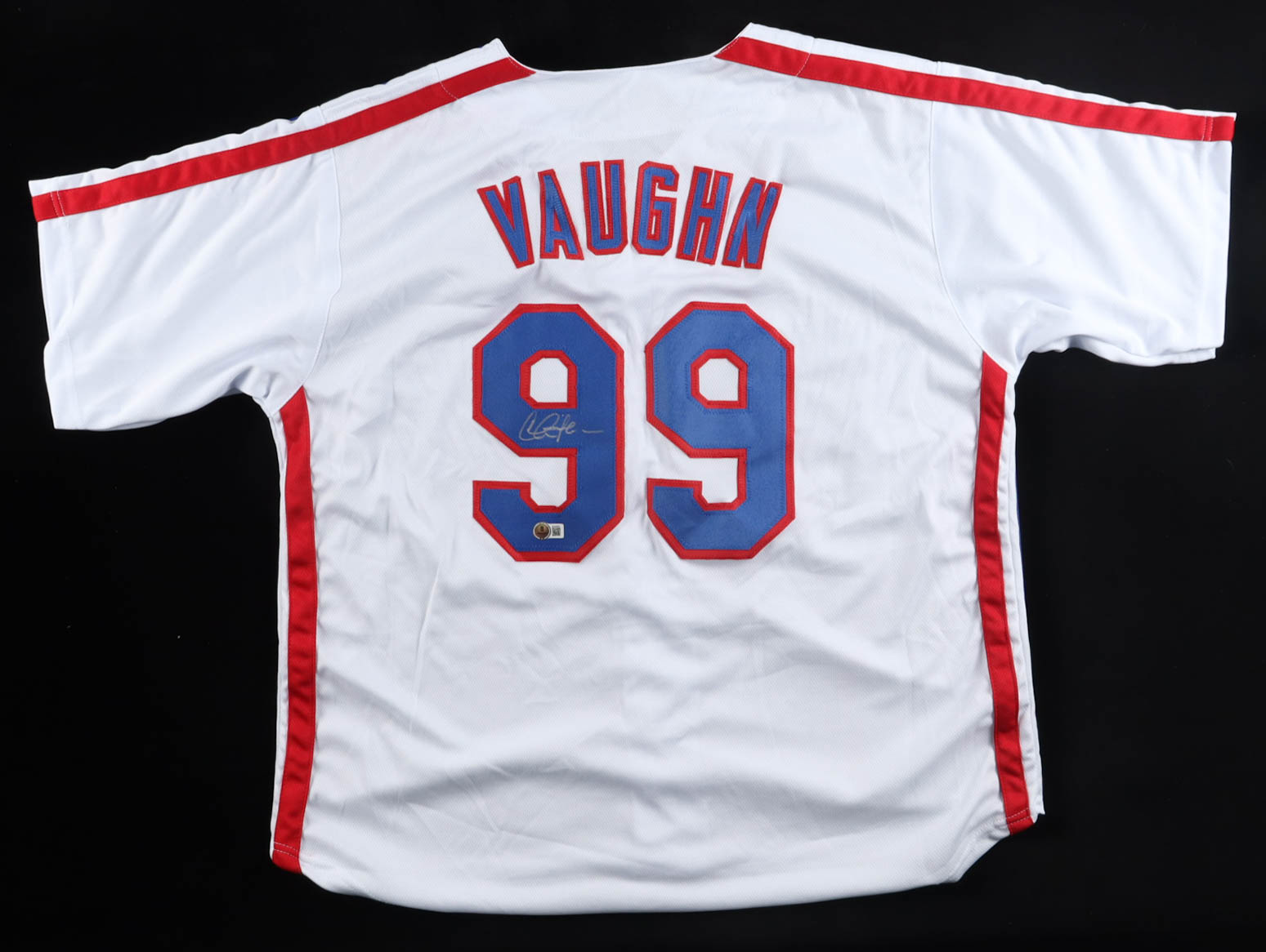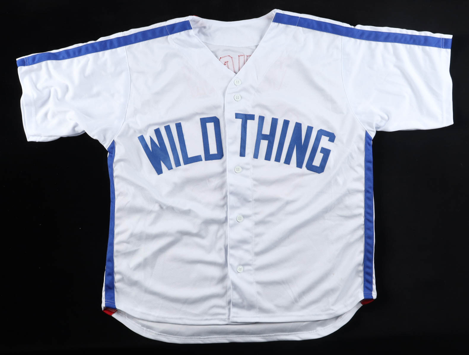 Custom jersey with everything sewn on, size XL. Hand-signed by Charlie Sheen (Ricky "Wild Thing" Vaughn).