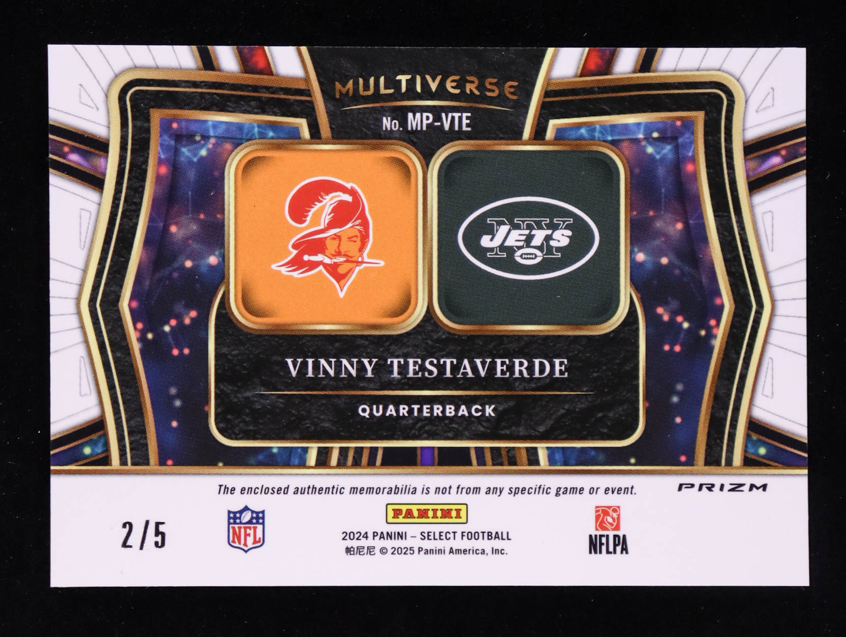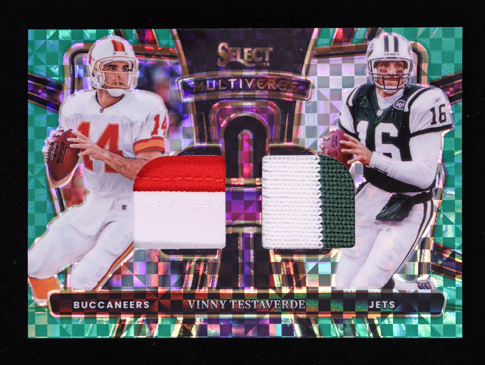 Vinny Testaverde 2024 Select Multiverse Dual Jerseys Prizm Green #31 #2/5