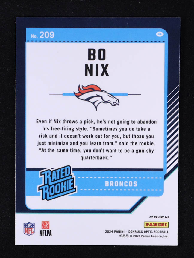 Bo Nix 2024 Donruss Optic Purple Shock #209 RR RC