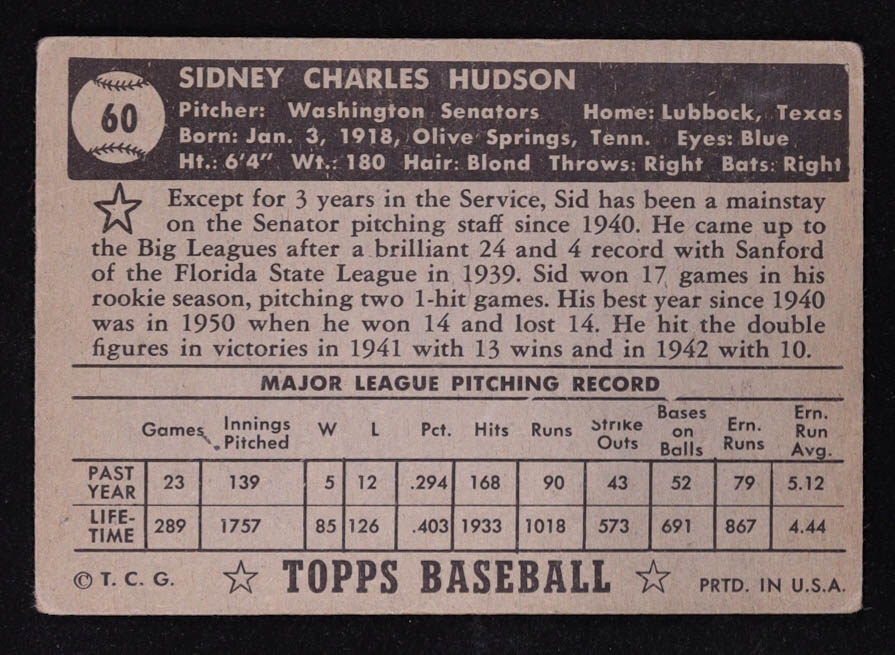 Sid Hudson 1952 Topps #60