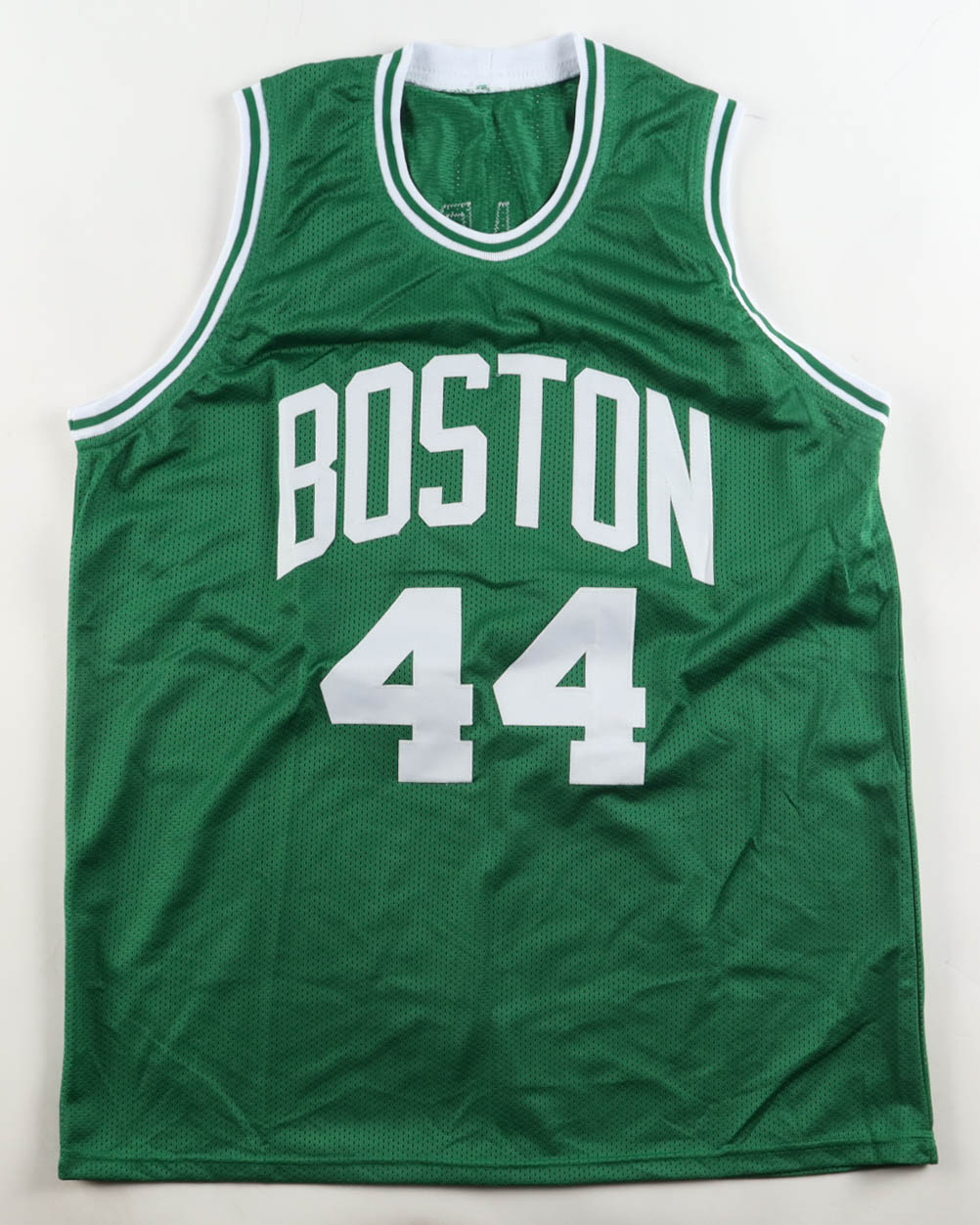 Custom jersey with everything sewn on, size XL. Hand-signed and inscribed by Brian Scalabrine (Boston Celtics).