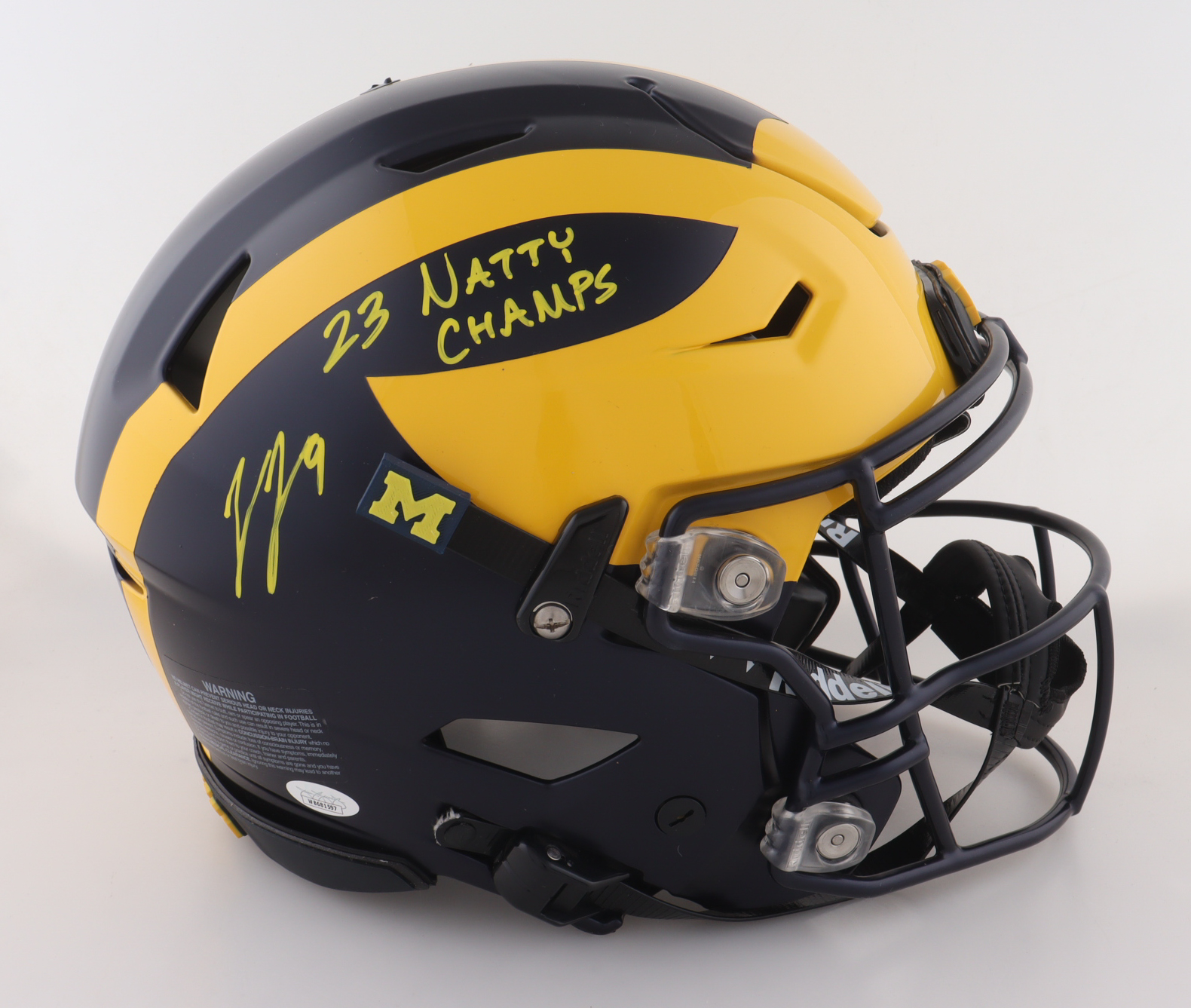 J.J. McCarthy Signed Michigan Wolverines Full-Size Authentic On-Field Speed-Flex Helmet Inscribed "23 Natty Champs" (JSA)