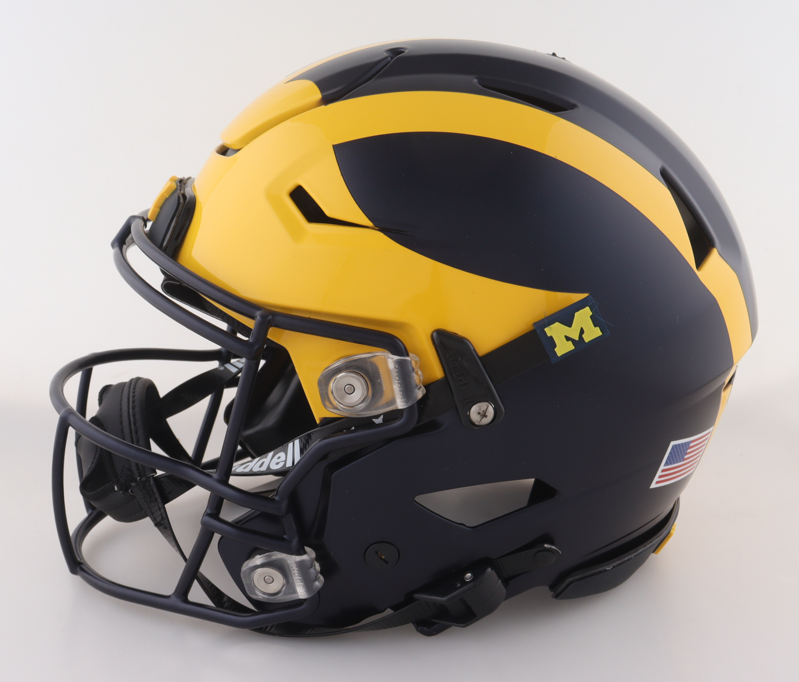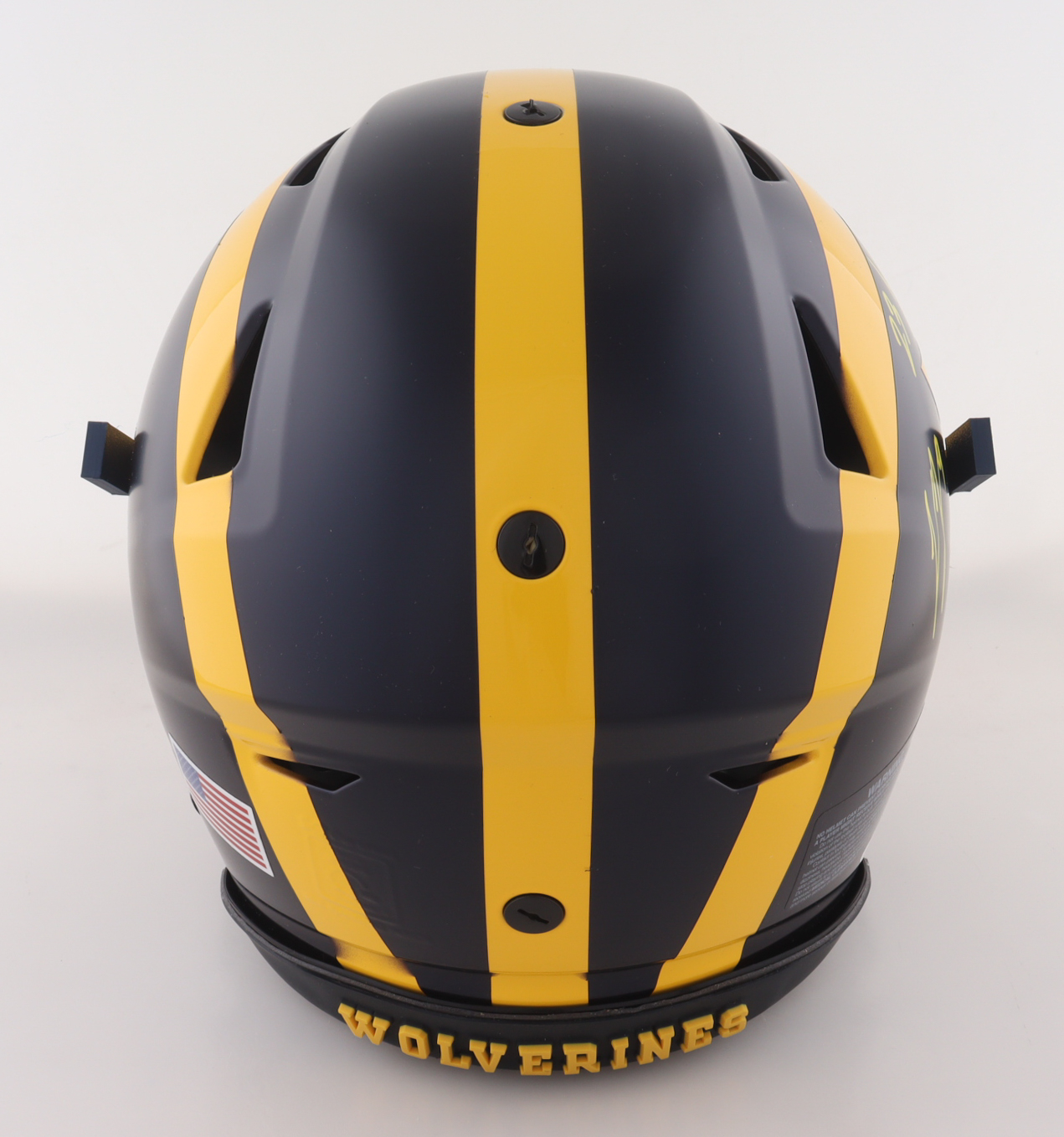 Riddell Michigan Wolverines full-size authentic on-field speed flex helmet. Hand-signed and inscribed by J.J. McCarthy.