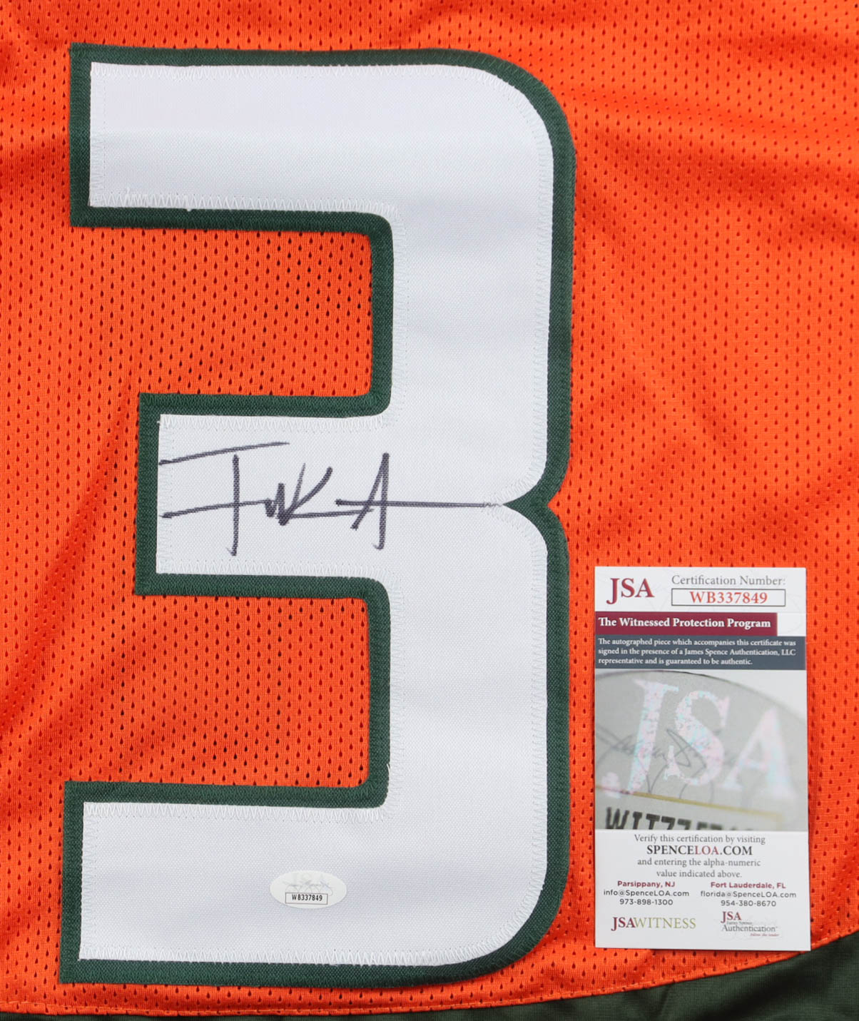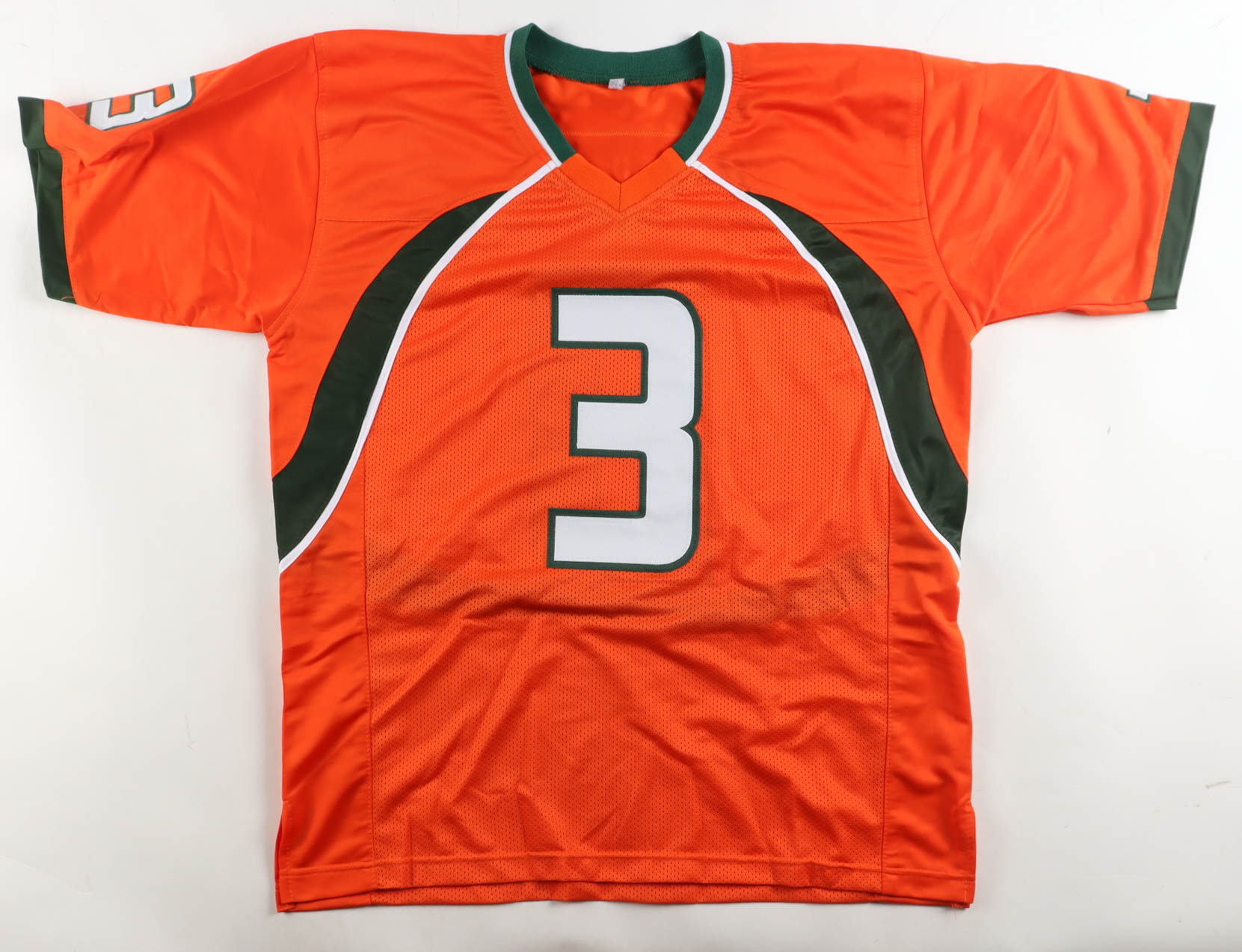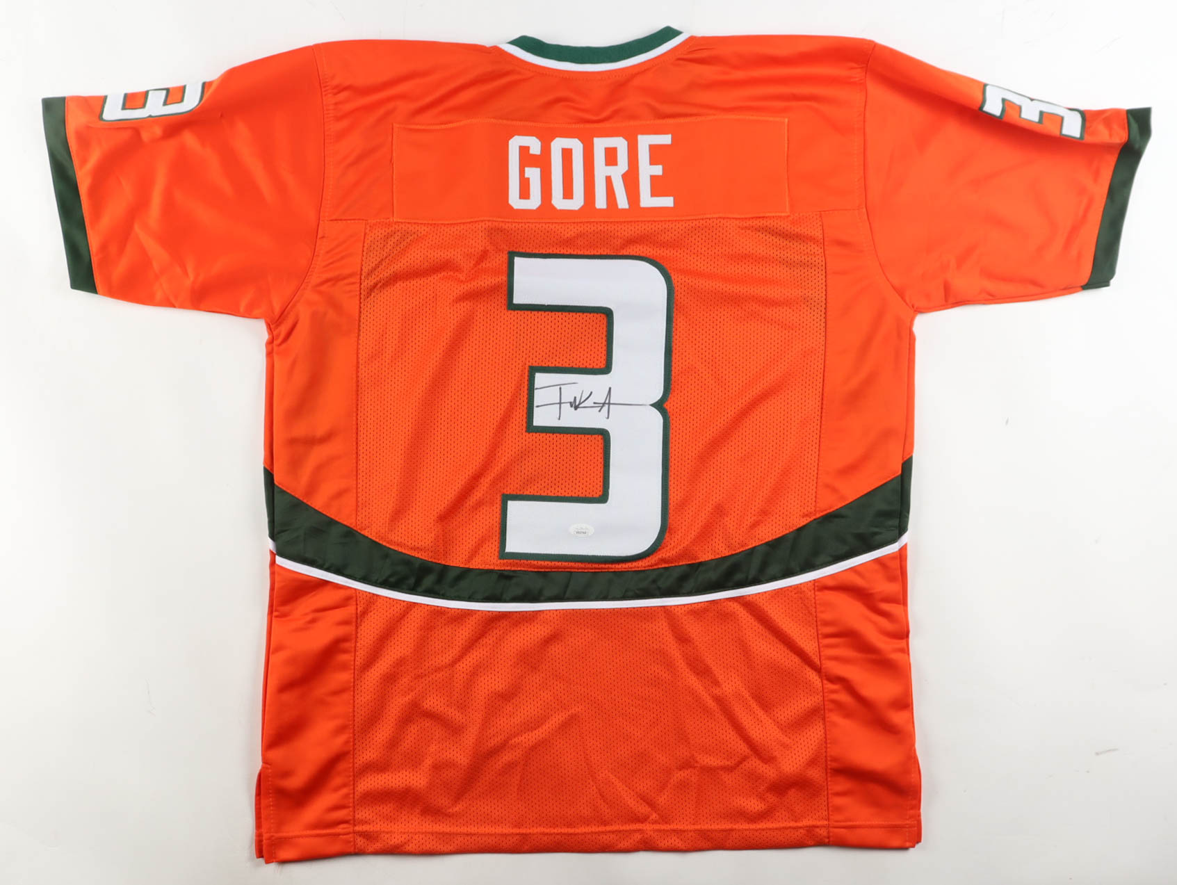 Custom jersey with everything sewn on, size XL. Hand-signed by Frank Gore (Miami Hurricanes).