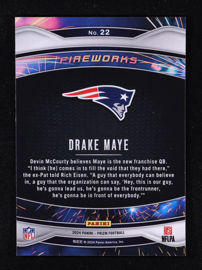 Drake Maye 2024 Panini Prizm Fireworks #22 RC