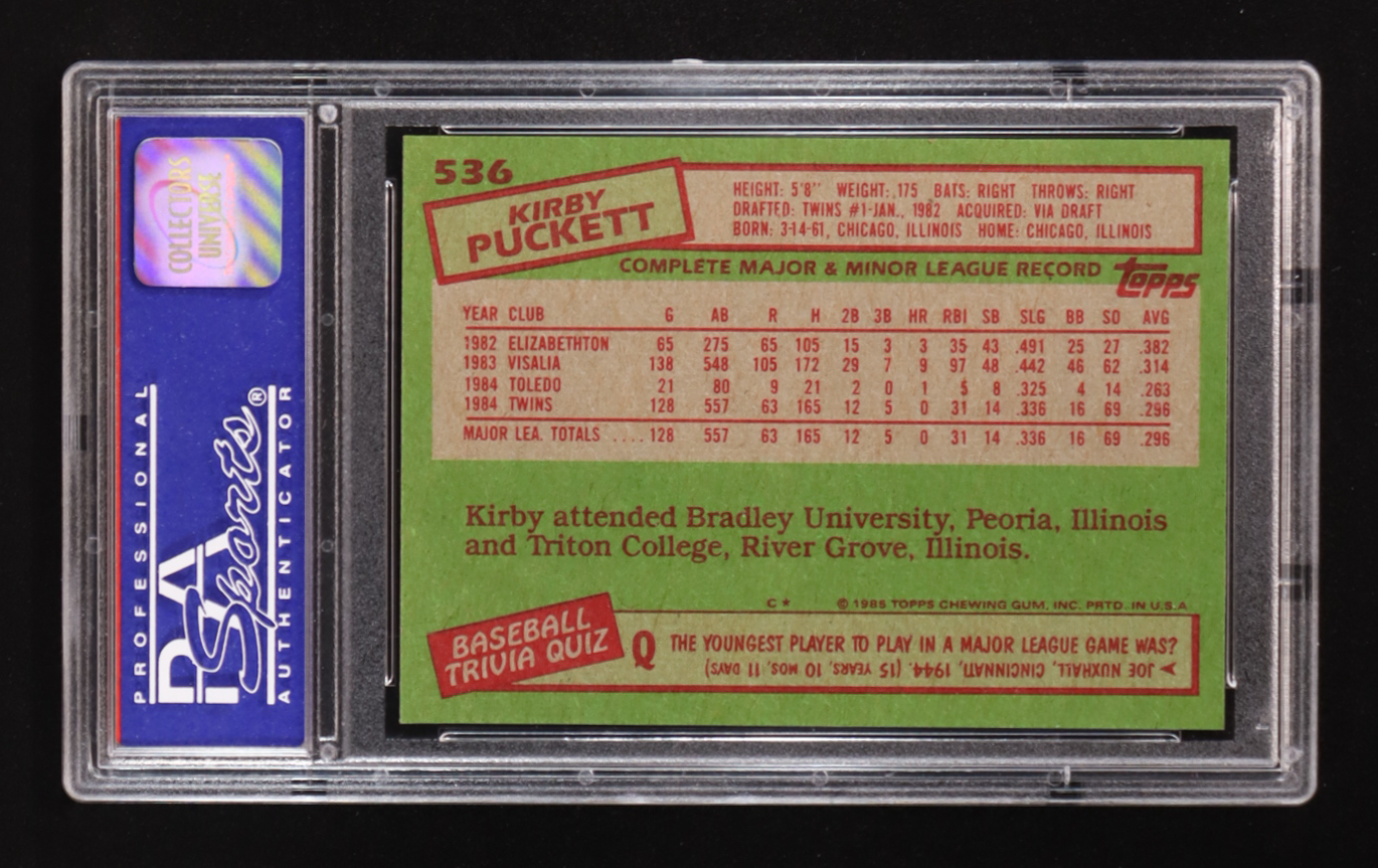 Kirby Puckett 1985 Topps #536 RC (PSA 8)