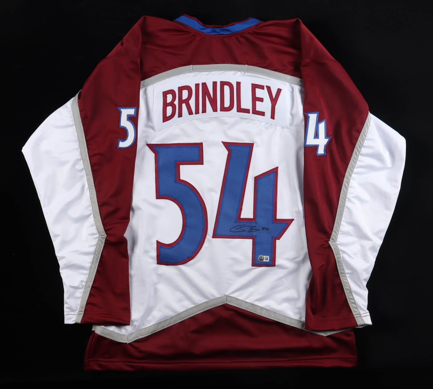 Custom jersey with everything sewn on, size XL. Hand-signed by Gavin Brindley (Colorado Avalanche).