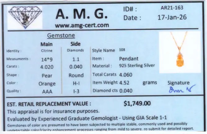 4.06 CTW Natural Citrine & Diamond 18K Gold Plated 18" Designer Necklace | Estimated Retail Value: $1,749 (AMG)
