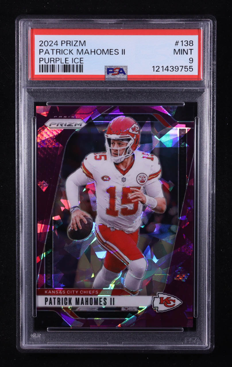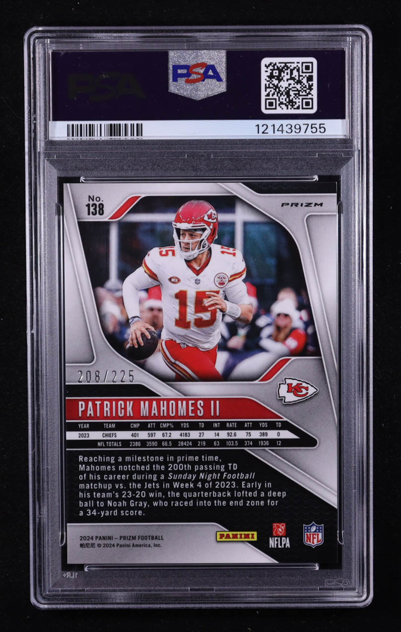 Patrick Mahomes II 2024 Panini Prizm Prizms Purple Ice #138 #208/225 (PSA 9)