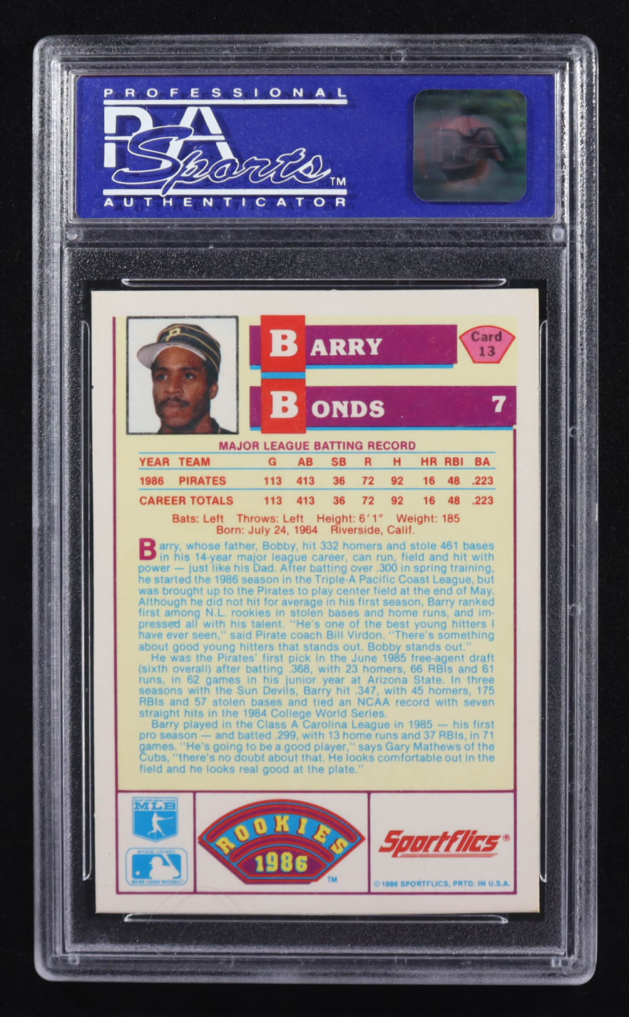 Barry Bonds 1986 Sportflics Rookies #13 RC (PSA 9)