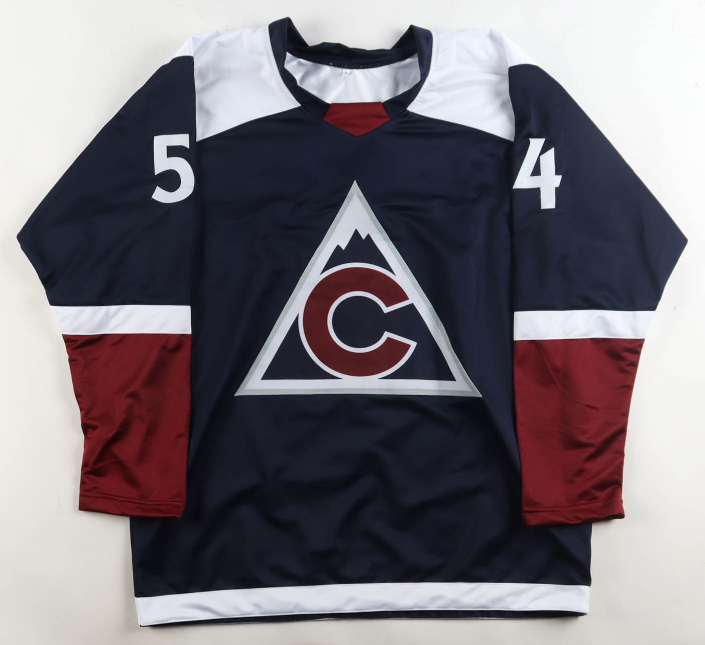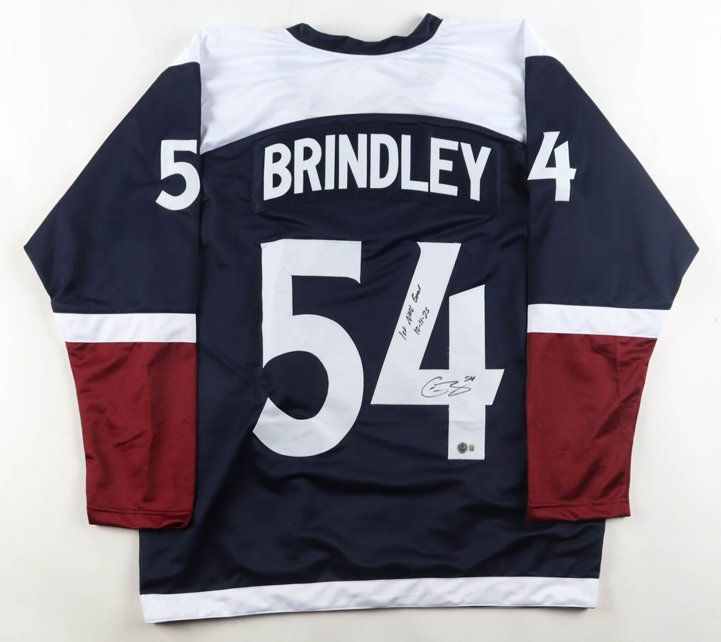 Custom jersey with everything sewn on, size XL. Hand-signed and inscribed by Gavin Brindley (Colorado Avalanche).