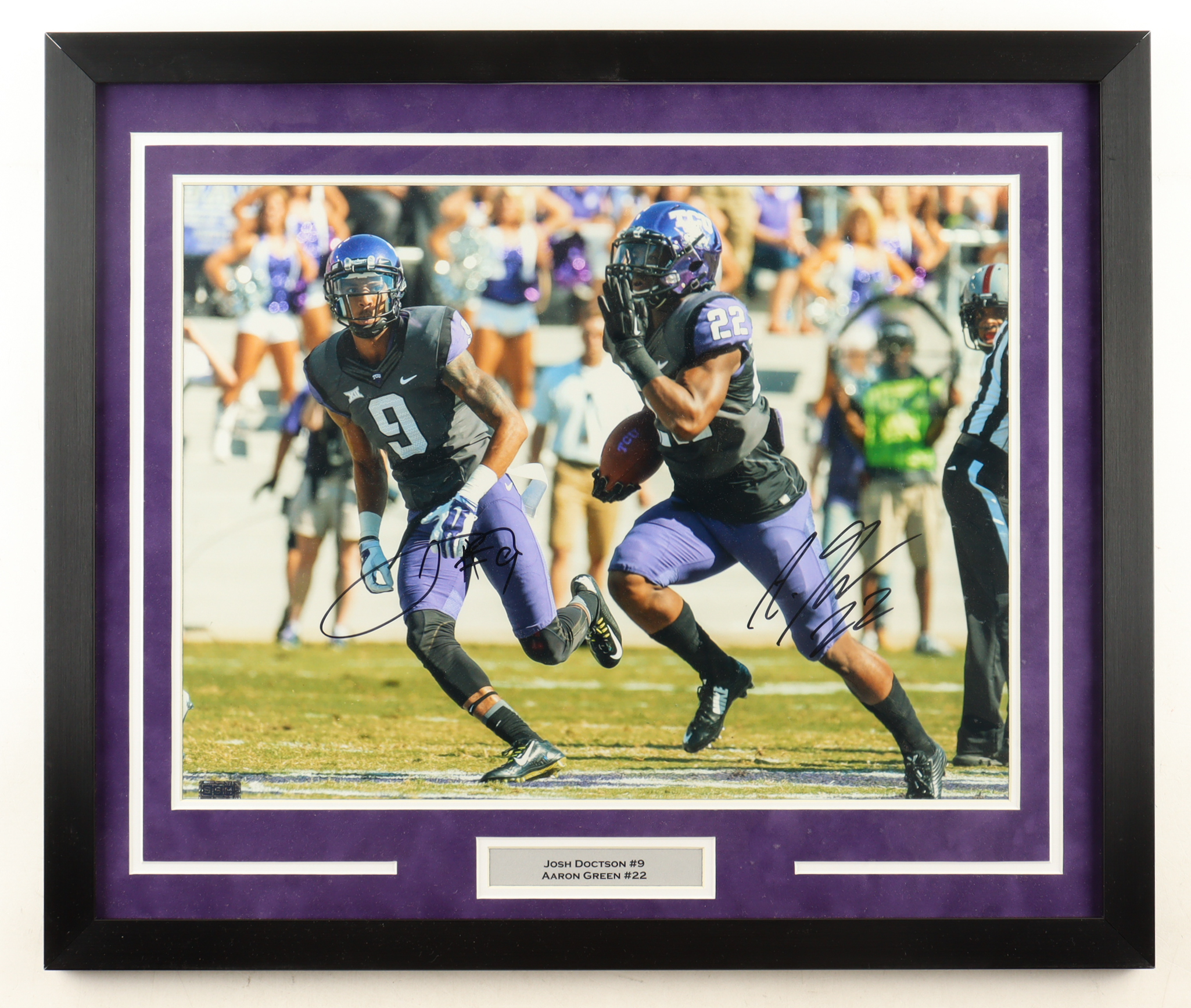 Custom frame measures approximately 22" x 26" in size and features a Photo that has been hand-signed by Josh Doctson and Aaron Green (TCU Horned Frogs).