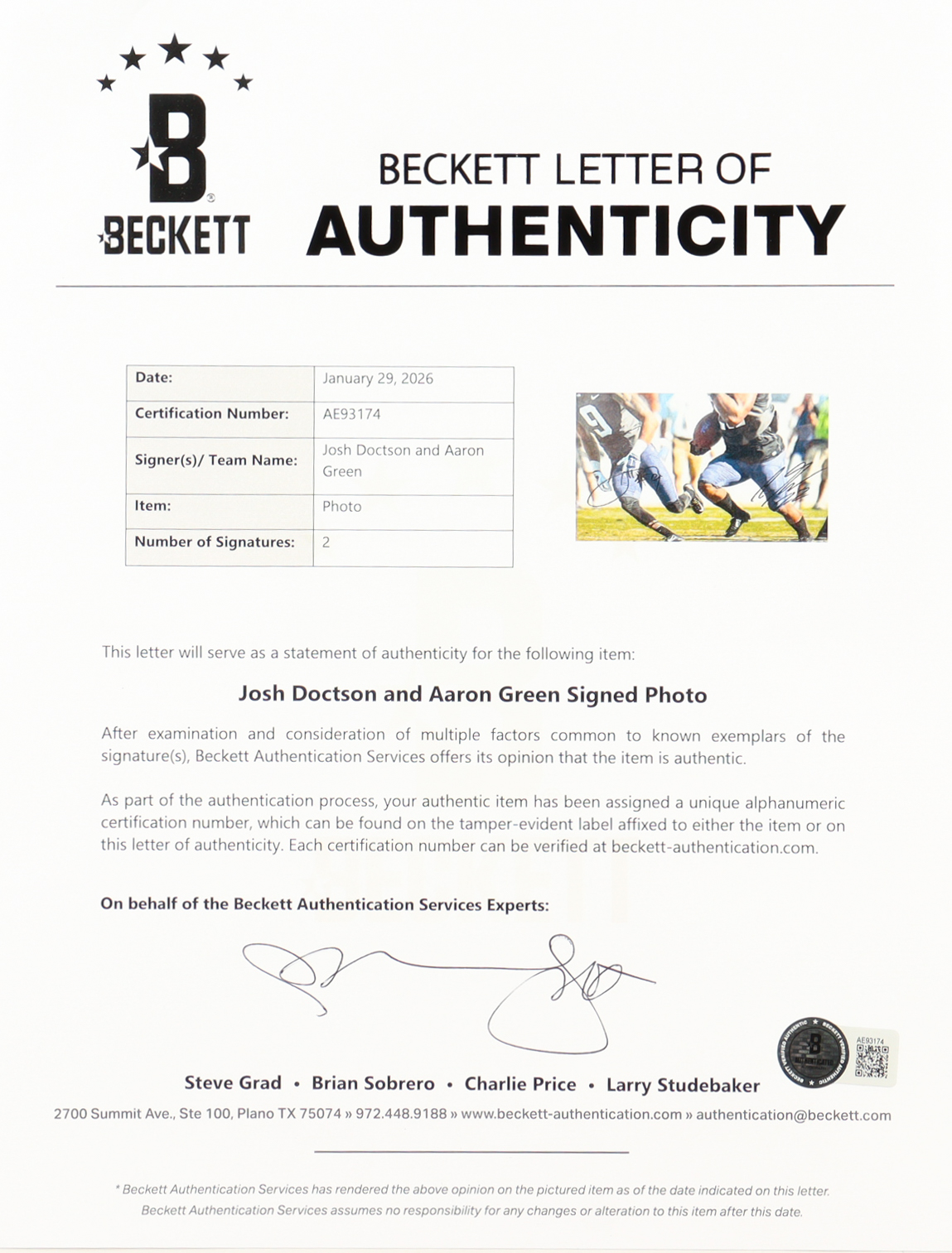 The autograph includes an official Beckett Authentication Services hologram and matching LOA for authenticity purposes.