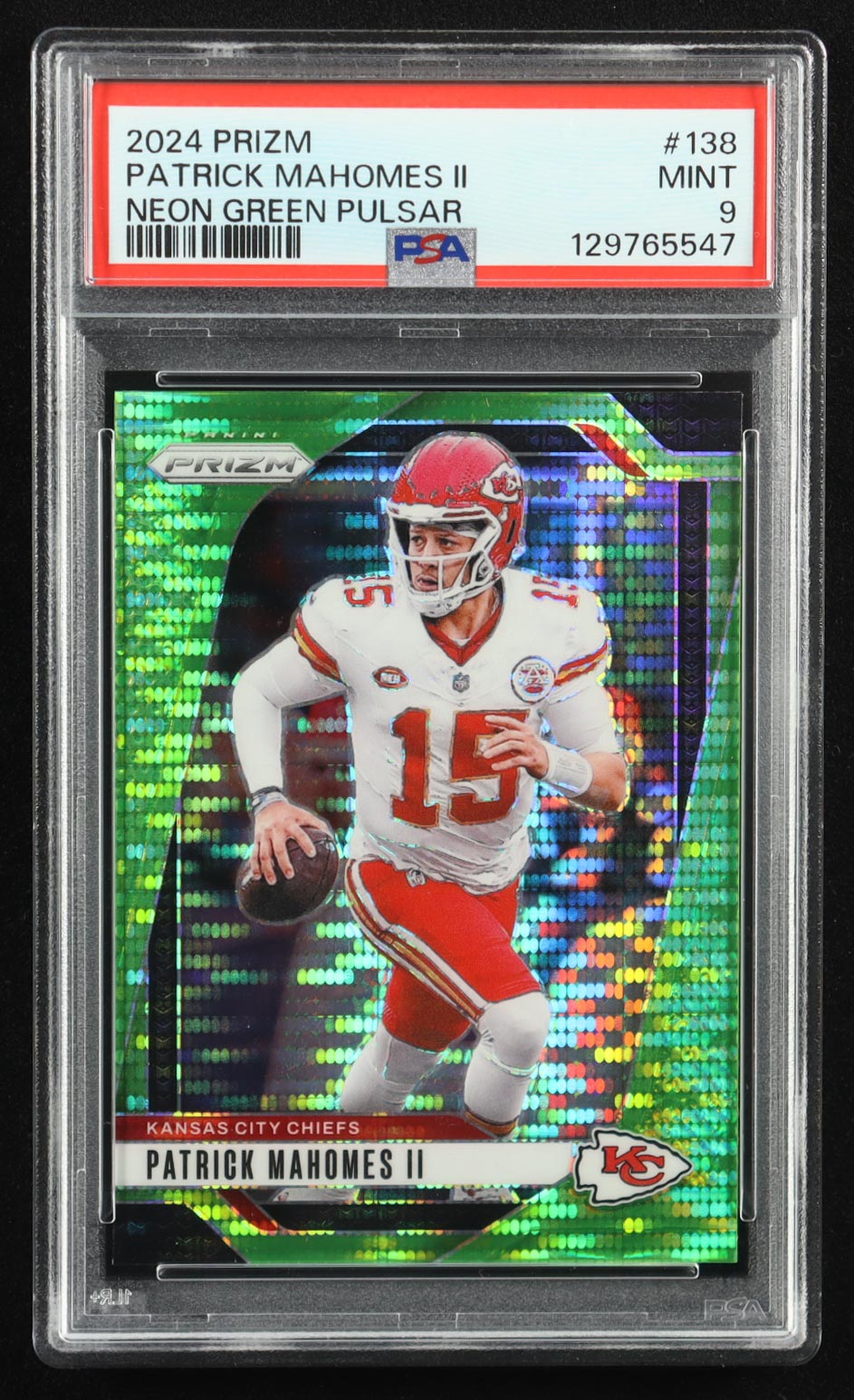 Patrick Mahomes II 2024 Panini Prizm Prizms Neon Green Pulsar #138 (PSA 9)